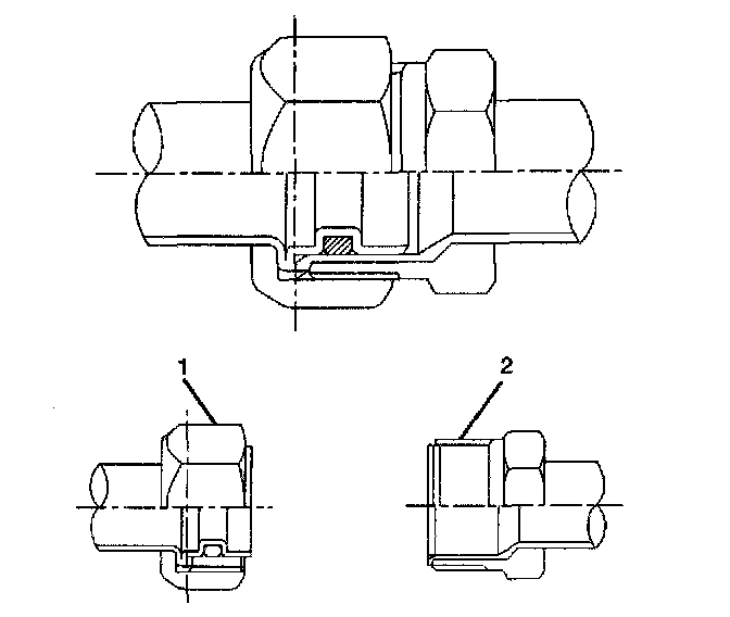Install new O-rings, if required. When disconnecting or connecting lines, use two wrenches to prevent the connecting portion from twisting or becoming damaged.