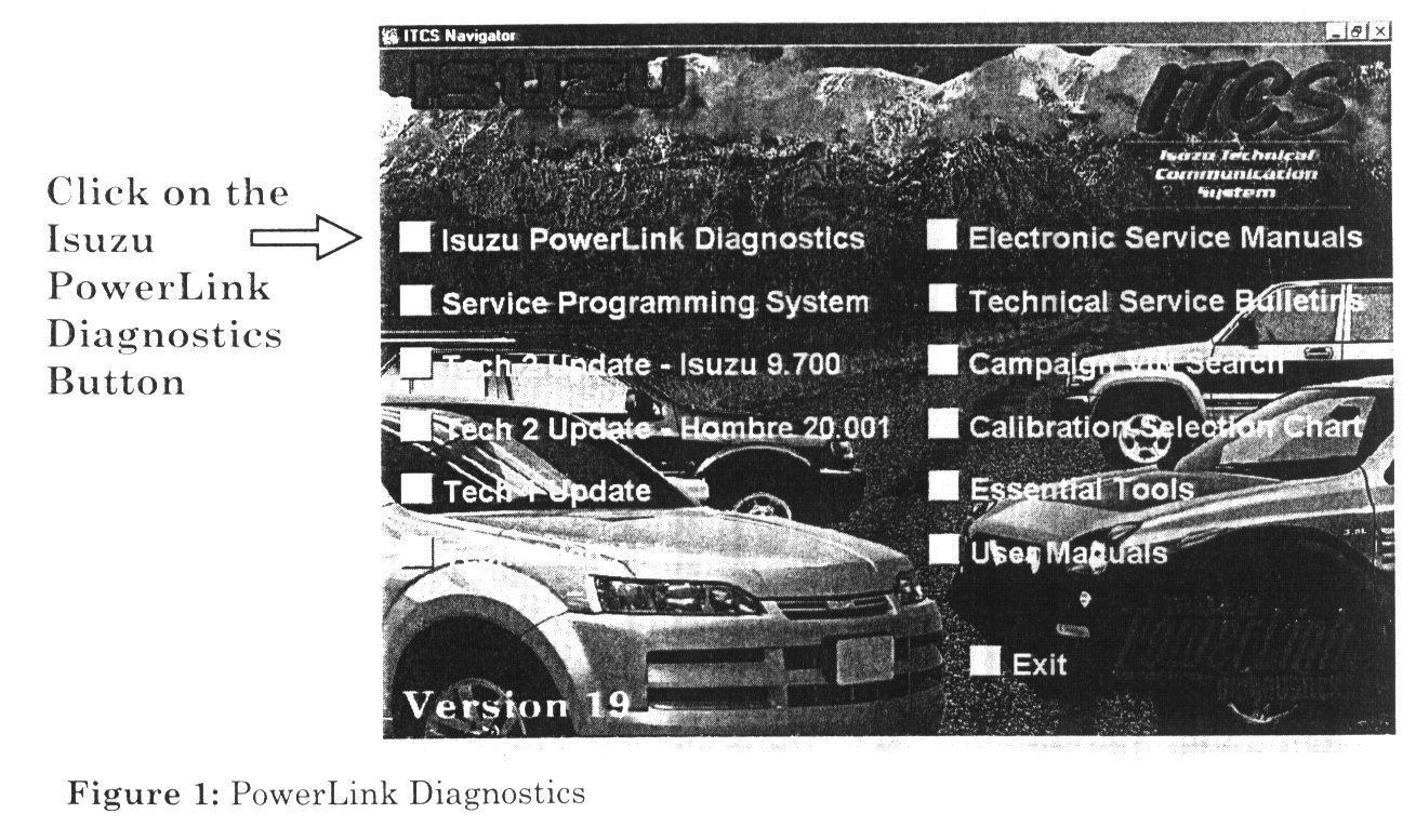 4. Click on the Isuzu PowerLink Diagnostics button (Figure 1).