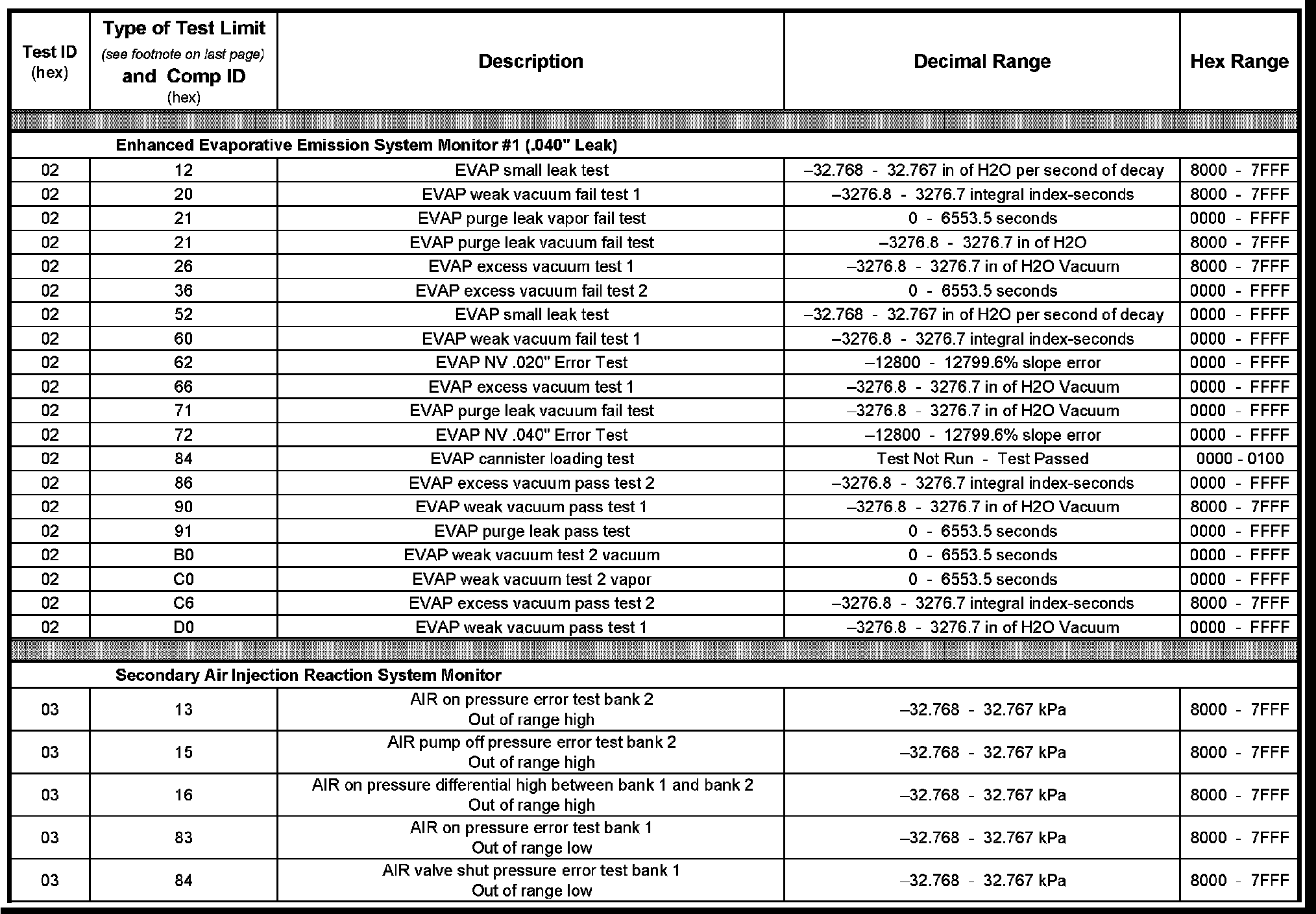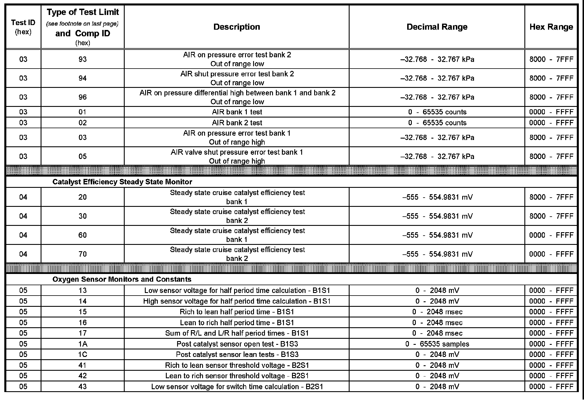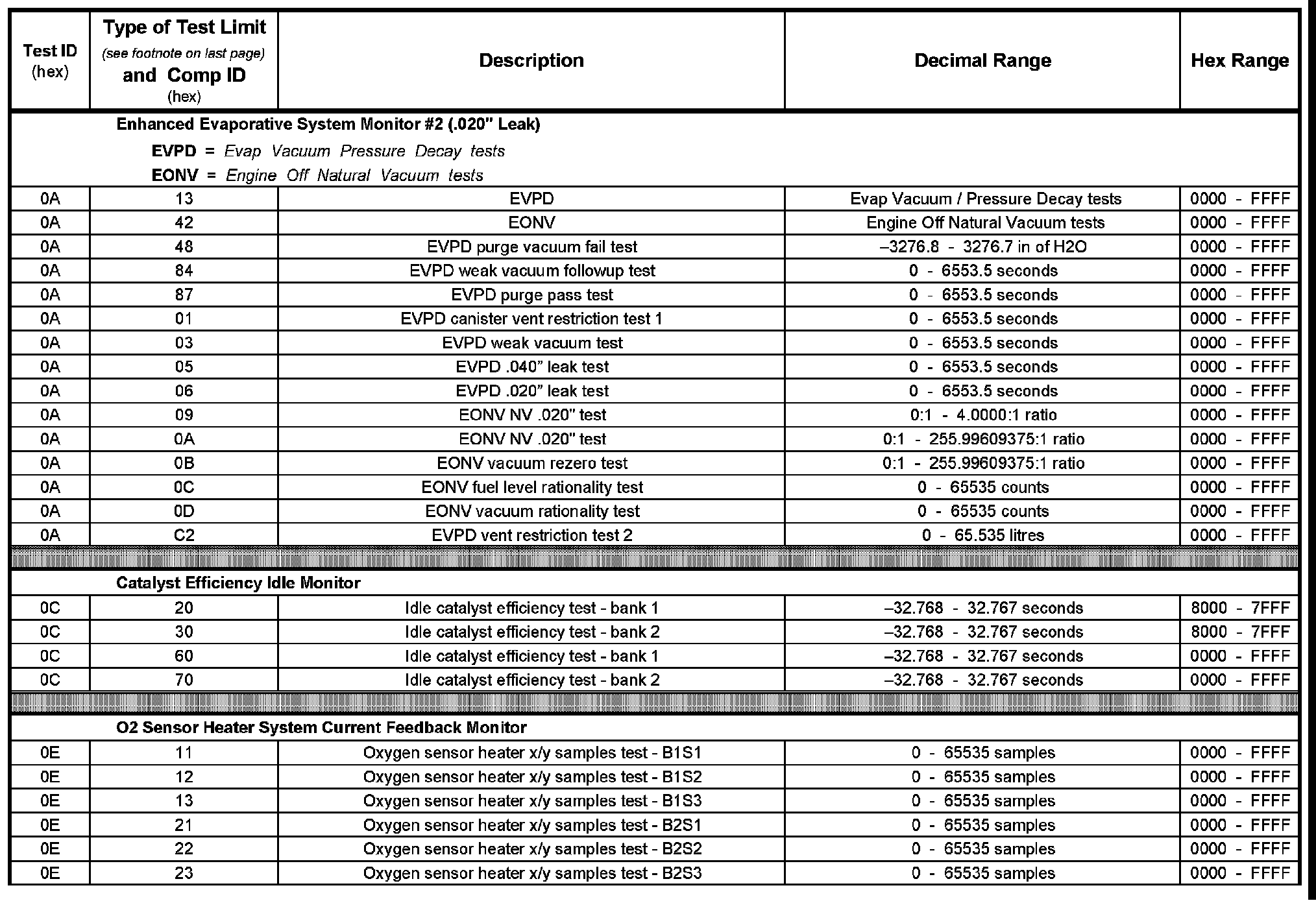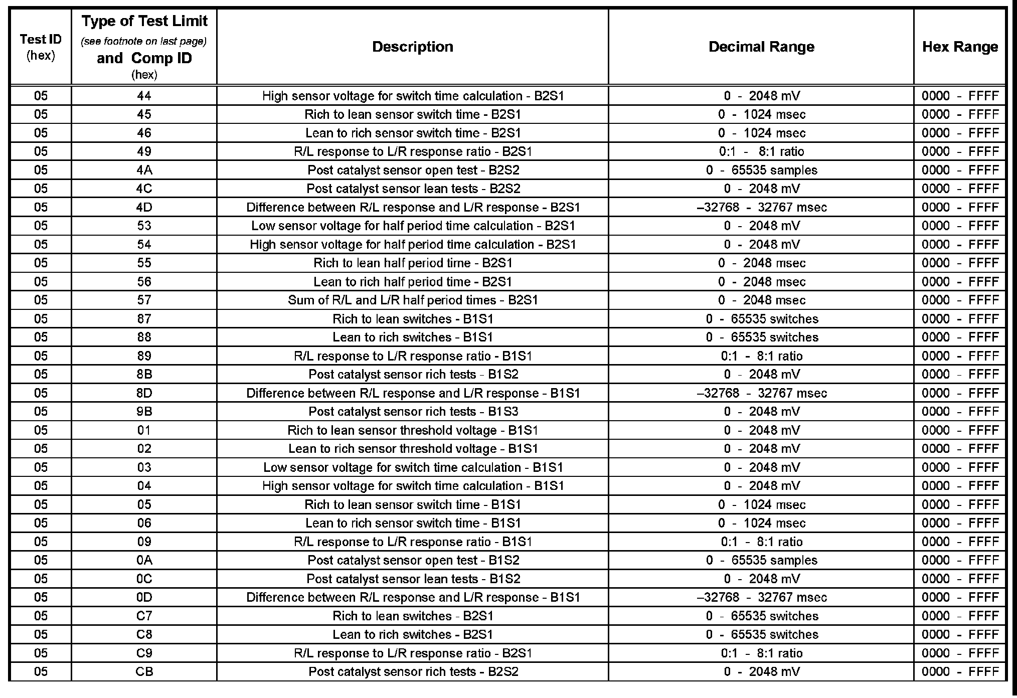 Mode $06 Data Definitions for Isuzu Vehicles Using J185O / Class2 Diagnostic Data Link
