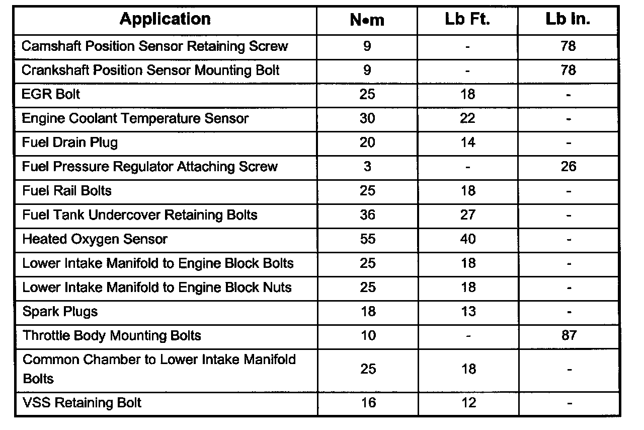 Tightening Specifications: