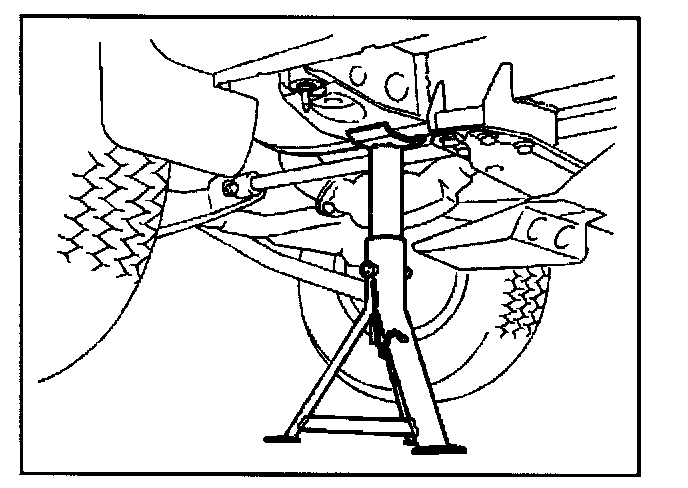 Position the chassis stands at the bottom of the frame sidemember, behind the front wheel.