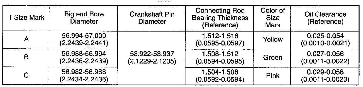 Select and install the new connecting rod bearings, paying close attention to the connecting rod big end diameter size mark (1).