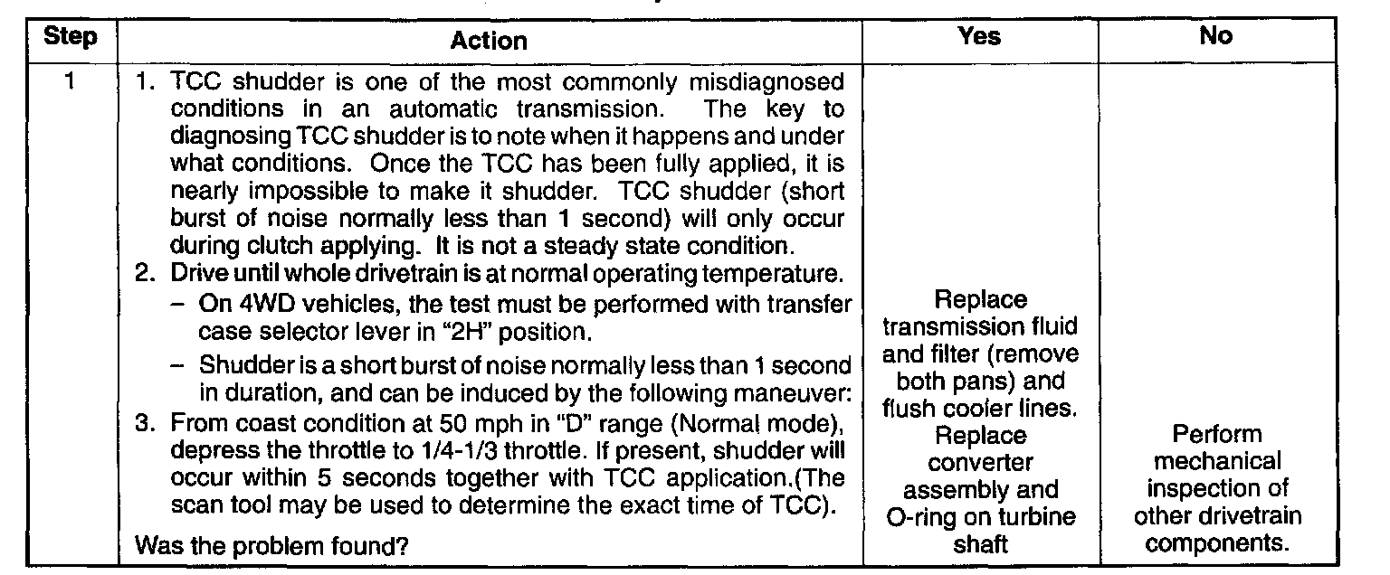 CHART 13: SHUDDER ONLY DURING TORQUE CONVERTER CLUTCH (TCC) APPLYING