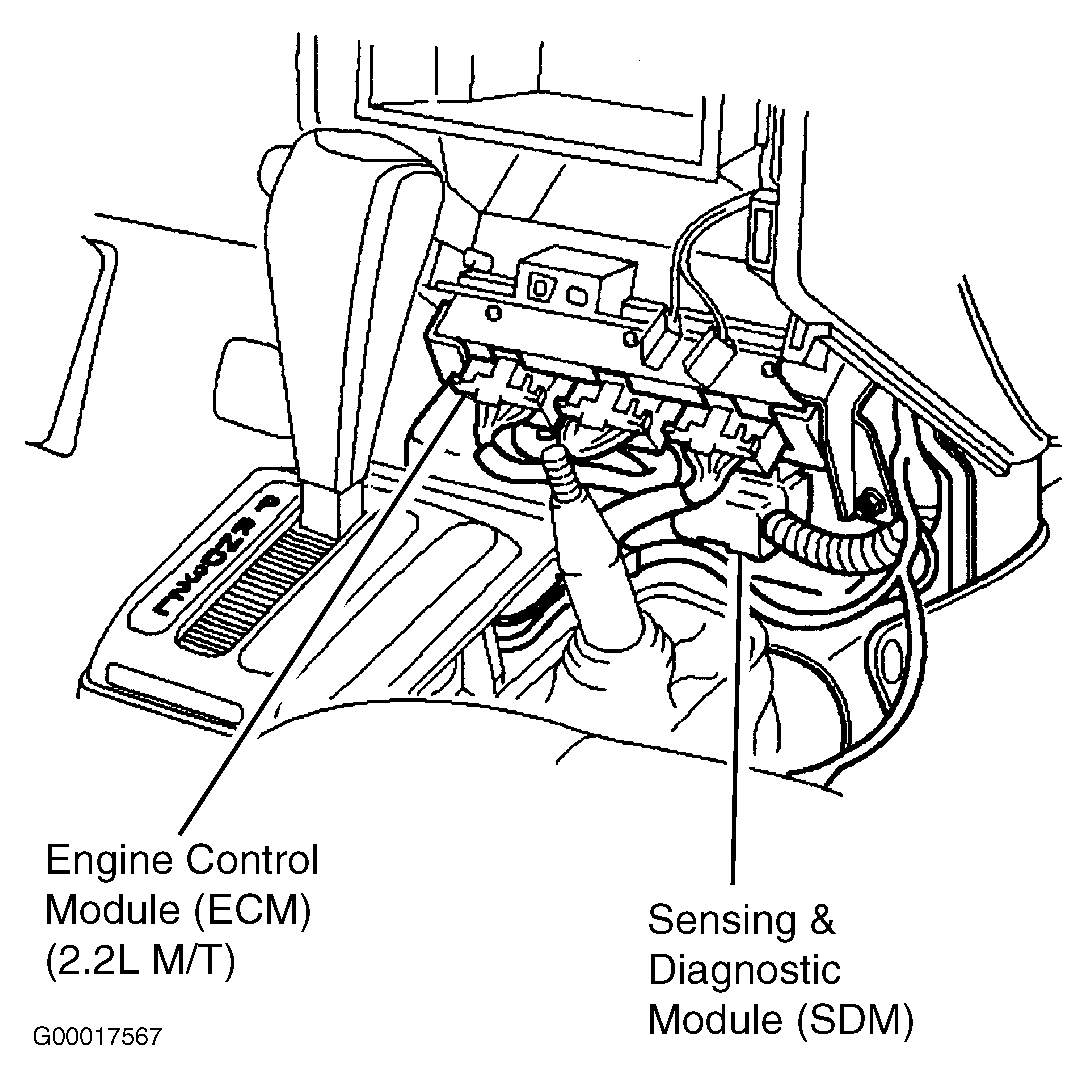 | Engine Control Module (ECM) (2.2L M/T) | Below center of dash. See Figure. |