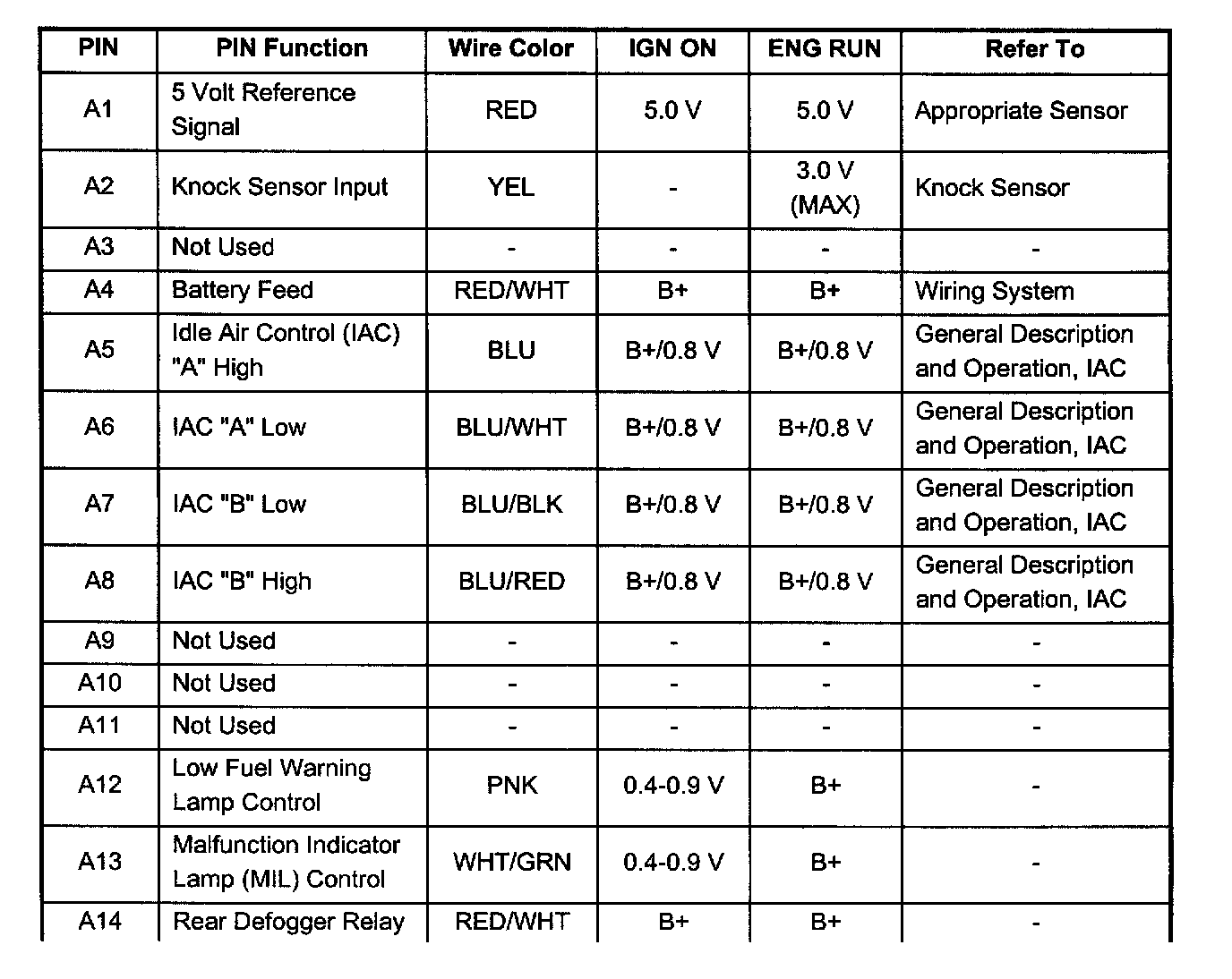PCM Pinout Table, 32-Pin Red Connector - Row "A" ( Pin A15):