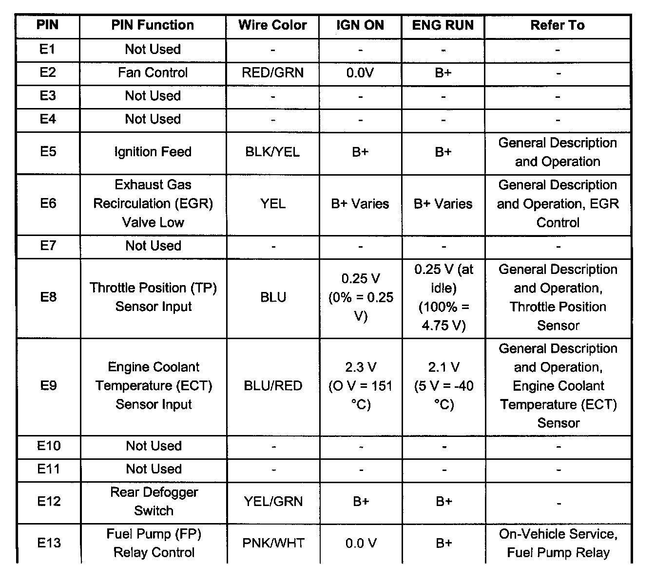 PCM 32 Pin Red Connector - Row "E" (Part E1 - E13):