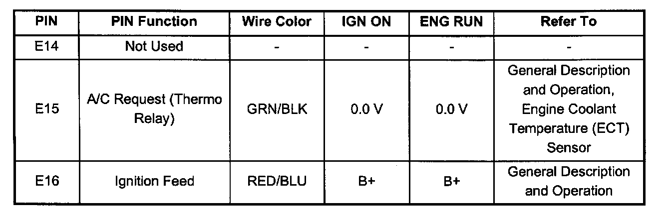 PCM 32 Pin Red Connector - Row "E" (Pin E14 - E16):