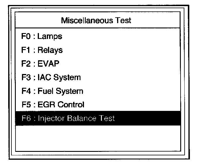 4. Select F6: Injector Balance Test in the Miscellaneous Test.