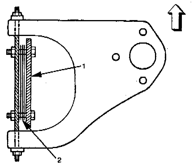 CAMBERThe camber angle can be adjusted by means of the camber shims(2) installed in position between the chassis frame (1) and fulcrum pins.