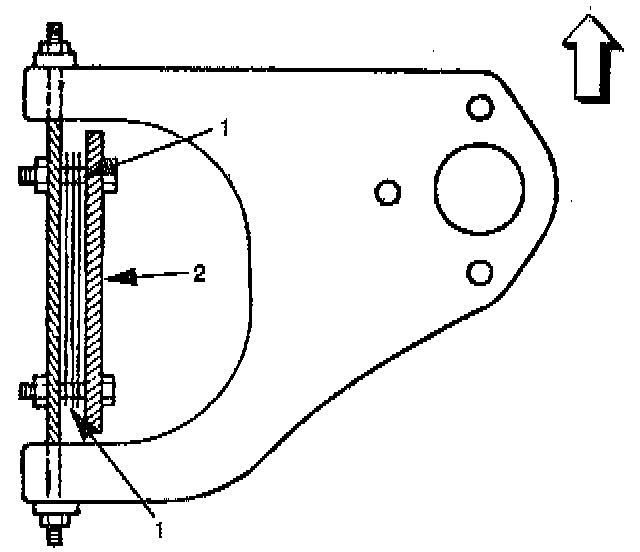 CASTERThe caster angle can be adjusted by means of the caster shims (1) installed between the chassis frame (2) and fulcrum pins.