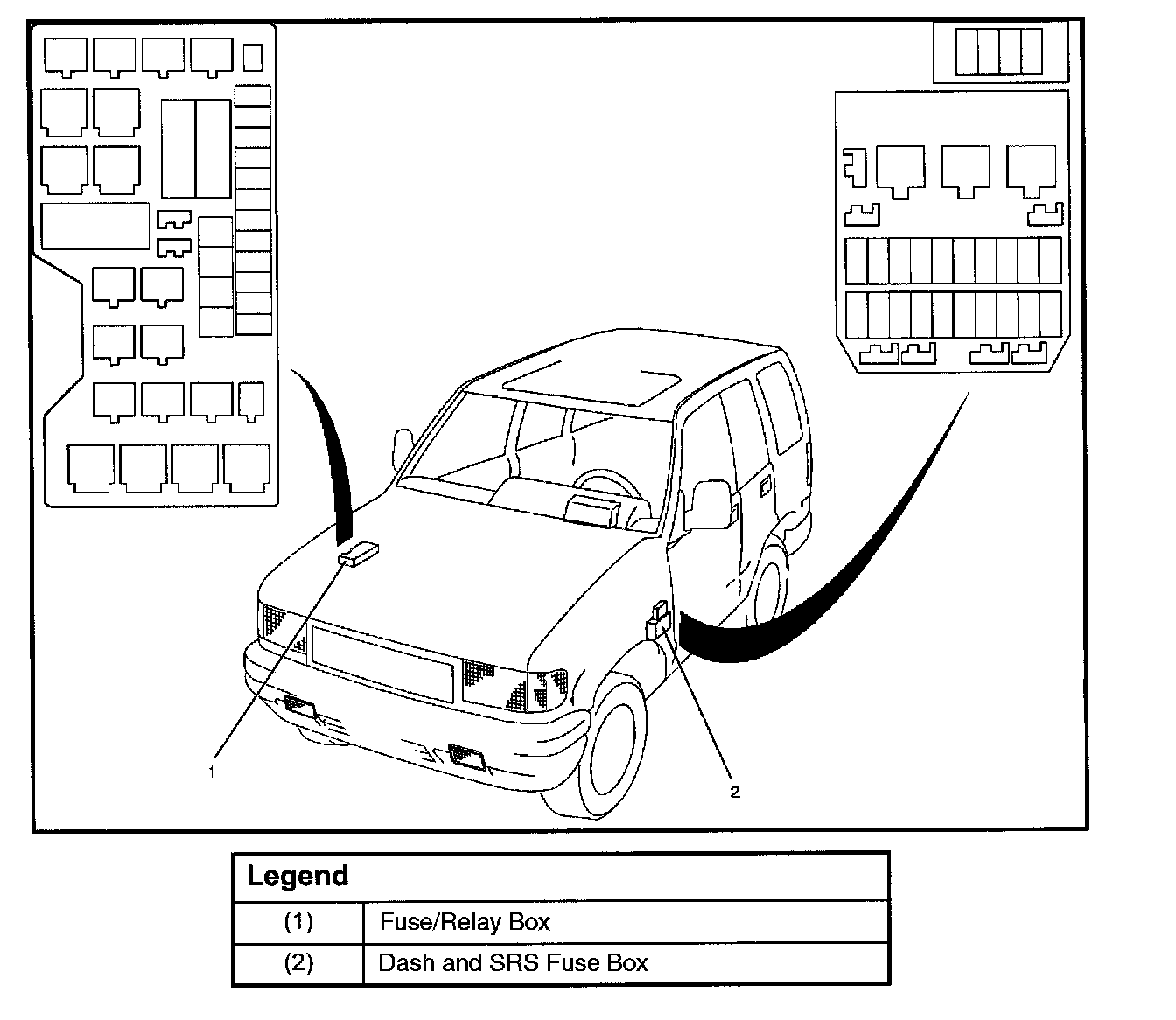 Fuse/Relay Box & Dash/SRS Fuse Box Locations: