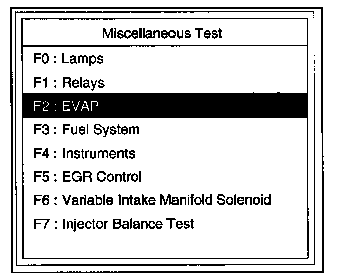 4. Select F2: EVAP Test in the Miscellaneous Test.