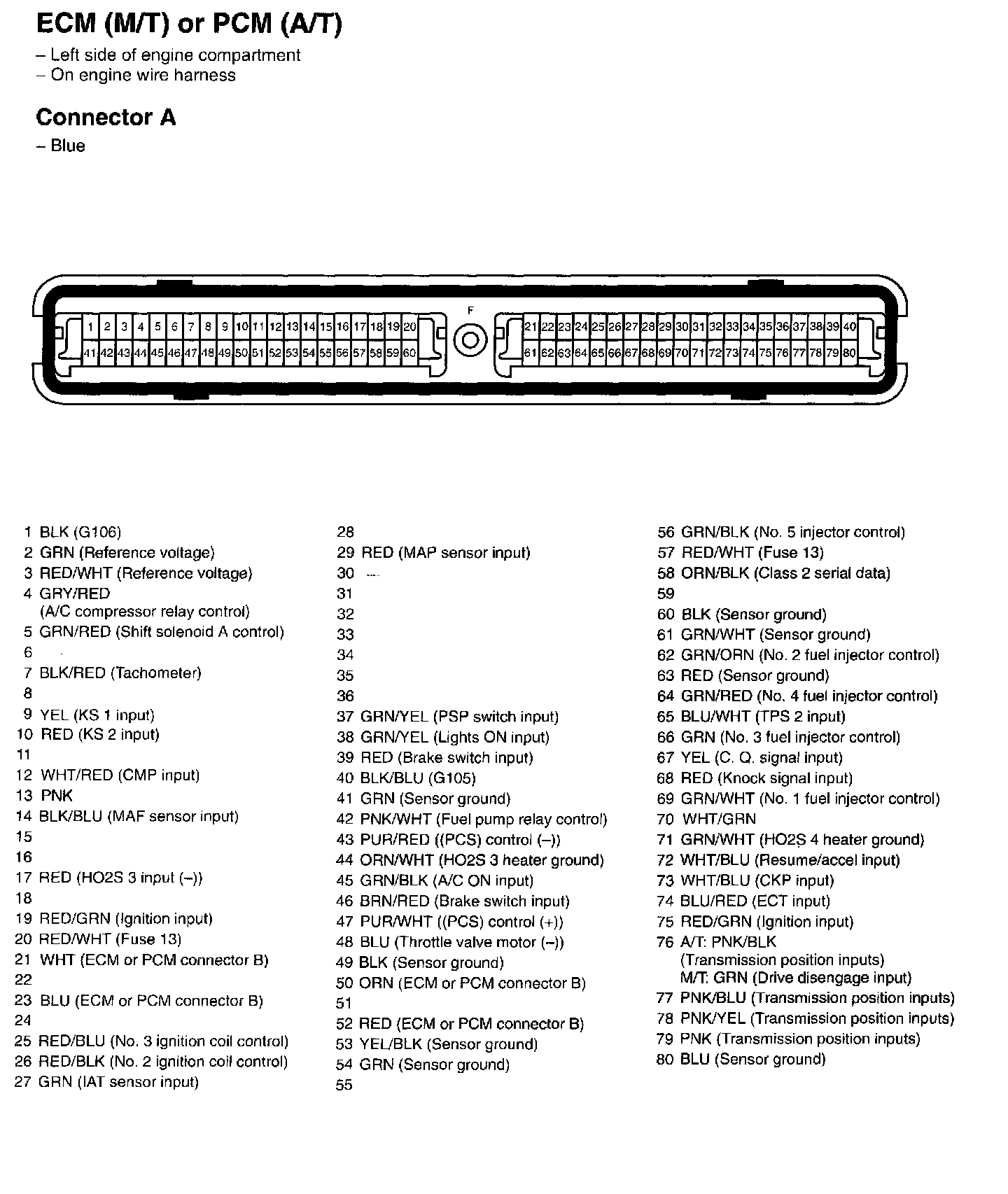 ECM (M/T) Or PCM (A/T) Connector A:
