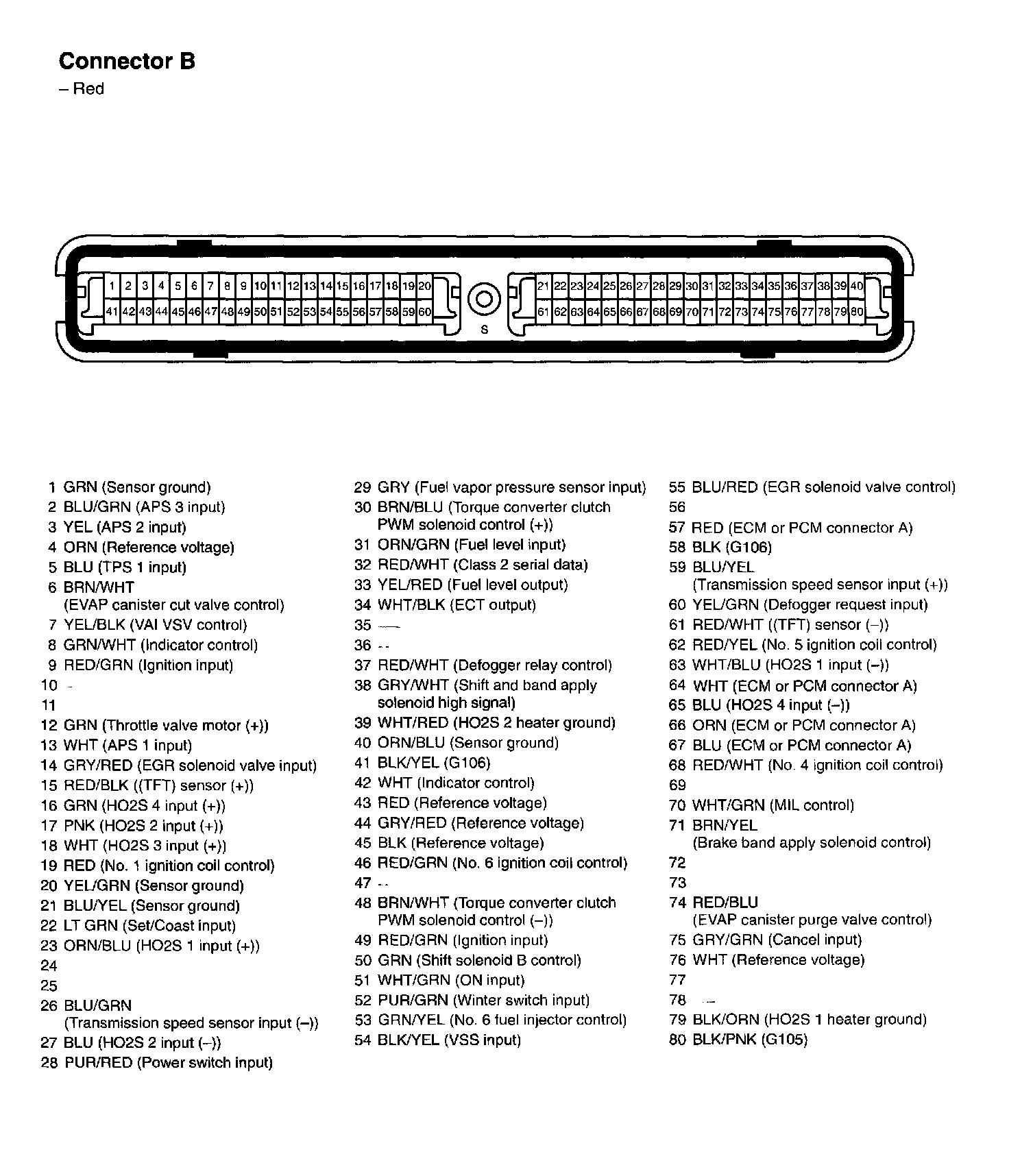 ECM (M/T) Or PCM (A/T) Connector B: