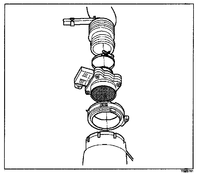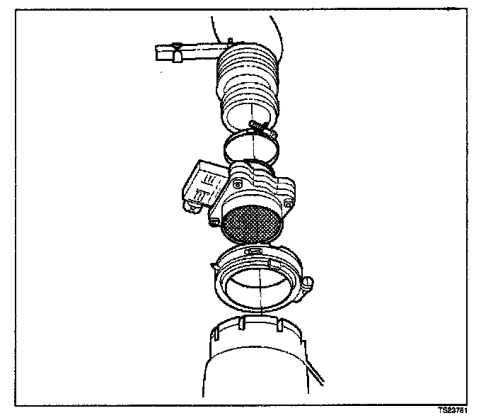 3. Loosen the clamps which secure the intake air duct and the air cleaner to the MAF sensor.