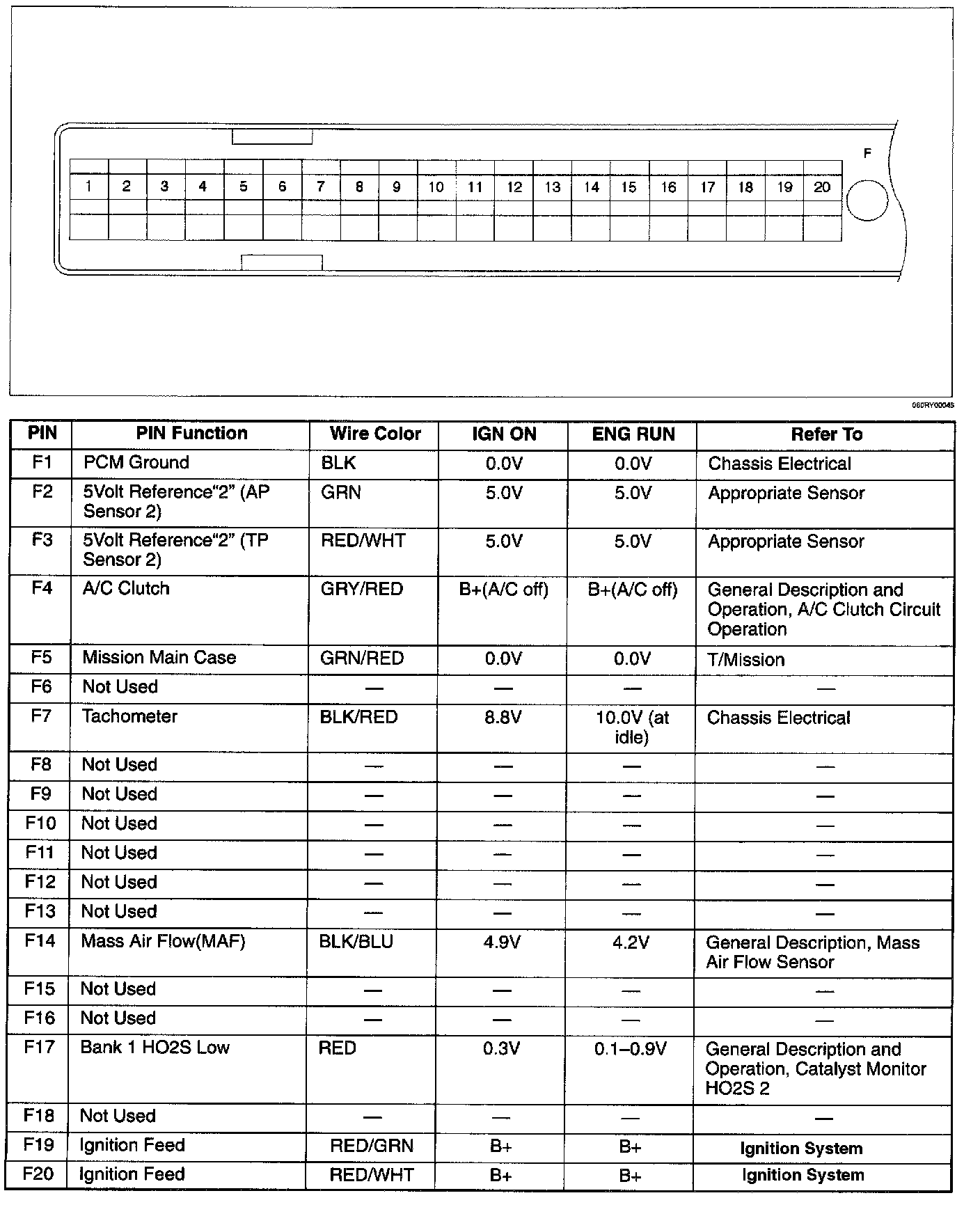 PCM Pinout Table, 80-Way Blue Connector - Row "F1 - 20":