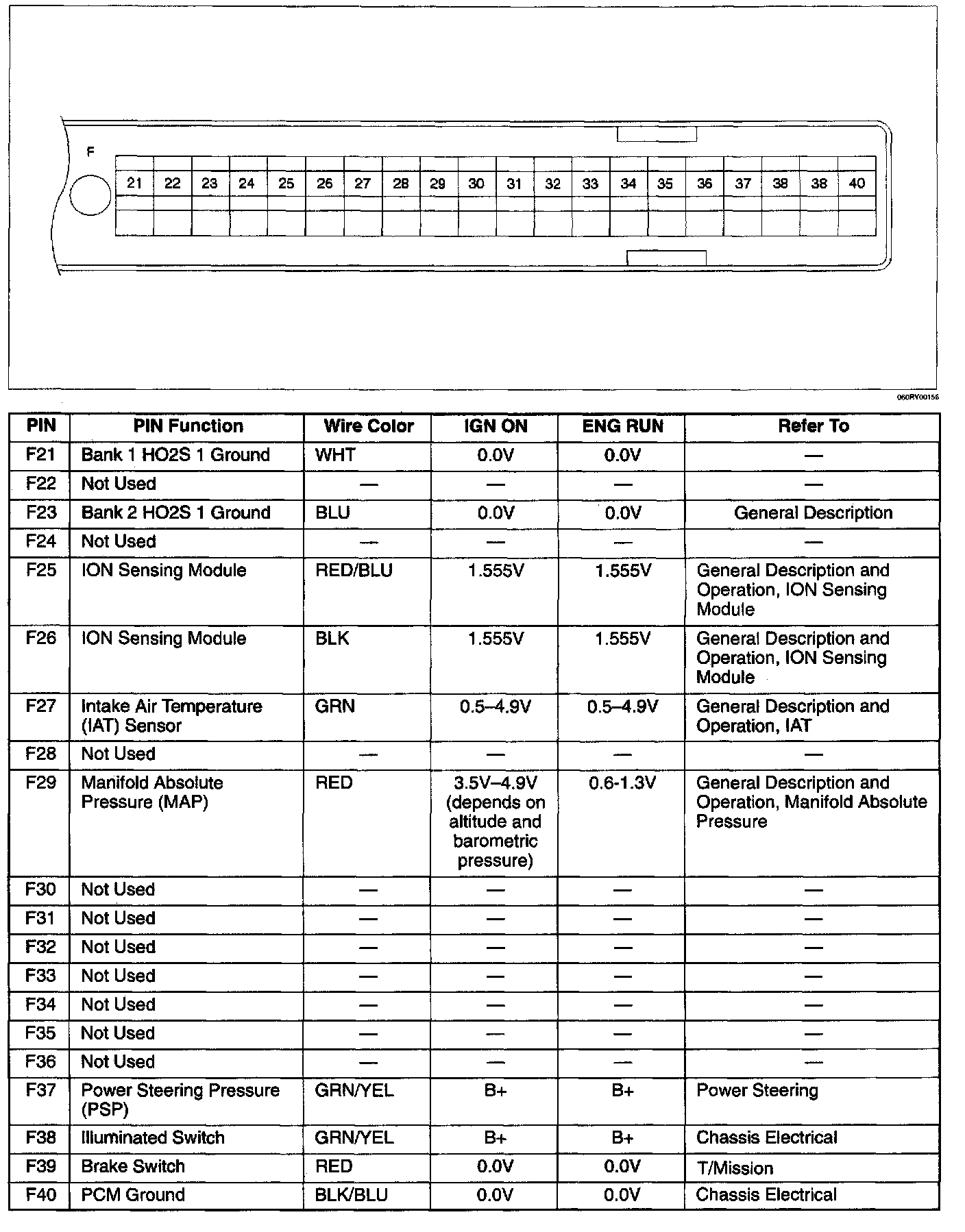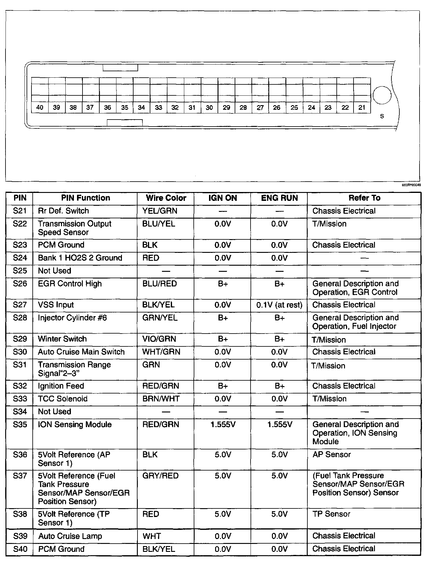 PCM Pinout Table, 80-Way Red Connector - Row "S21 - 40":