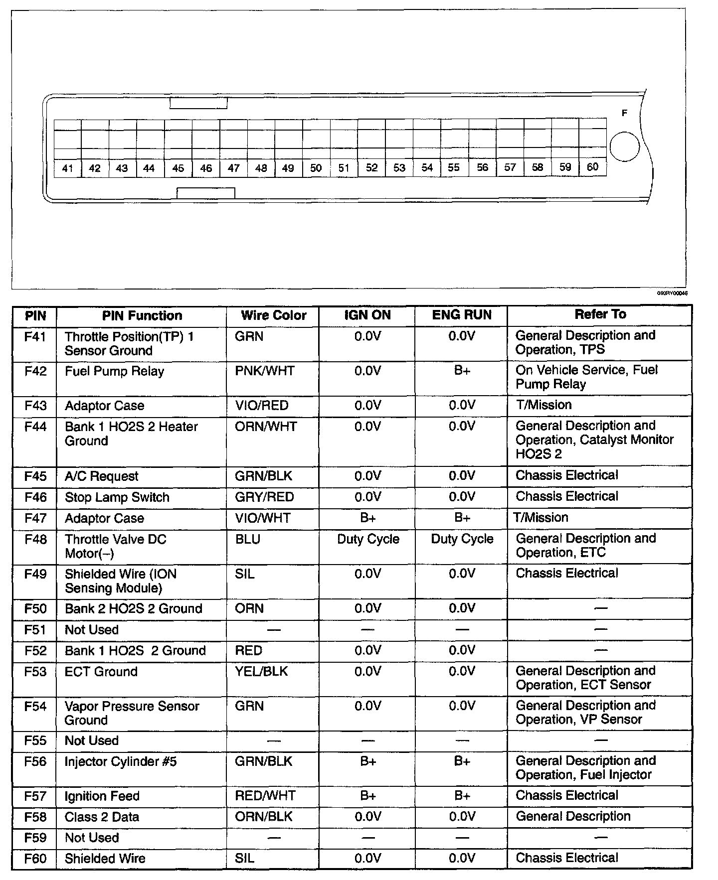 PCM Pinout Table, 80-Way Blue Connector - Row "F41 - 60":