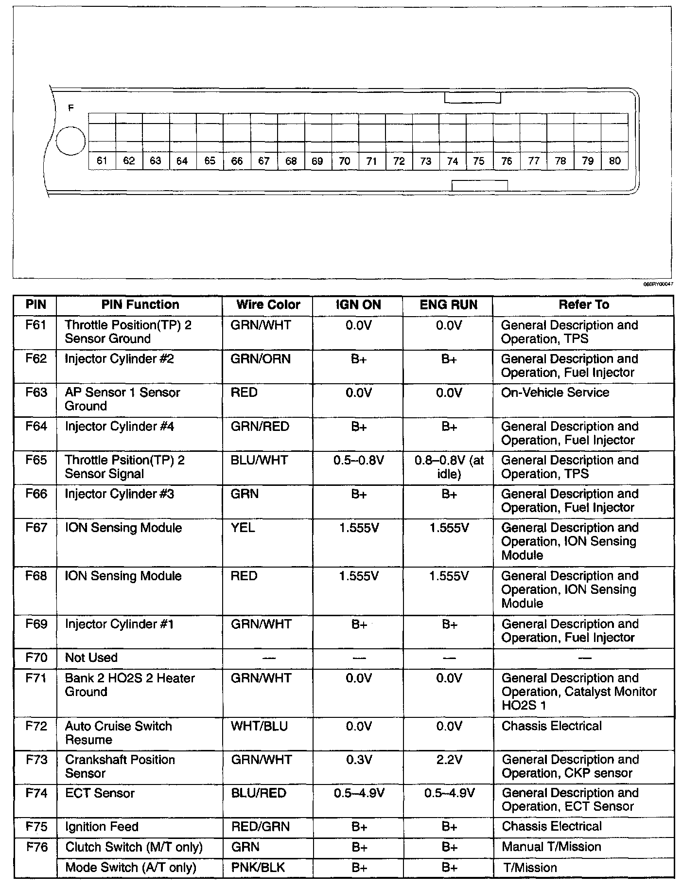 PCM Pinout Table, 80-Way Blue Connector - Row "F61 - 76":