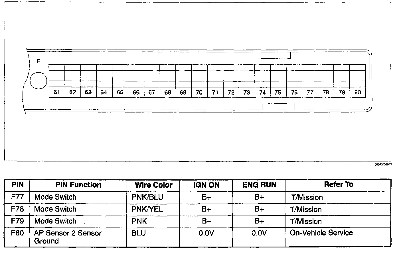PCM Pinout Table, 80-Way Blue Connector - Row "F77 - 80":