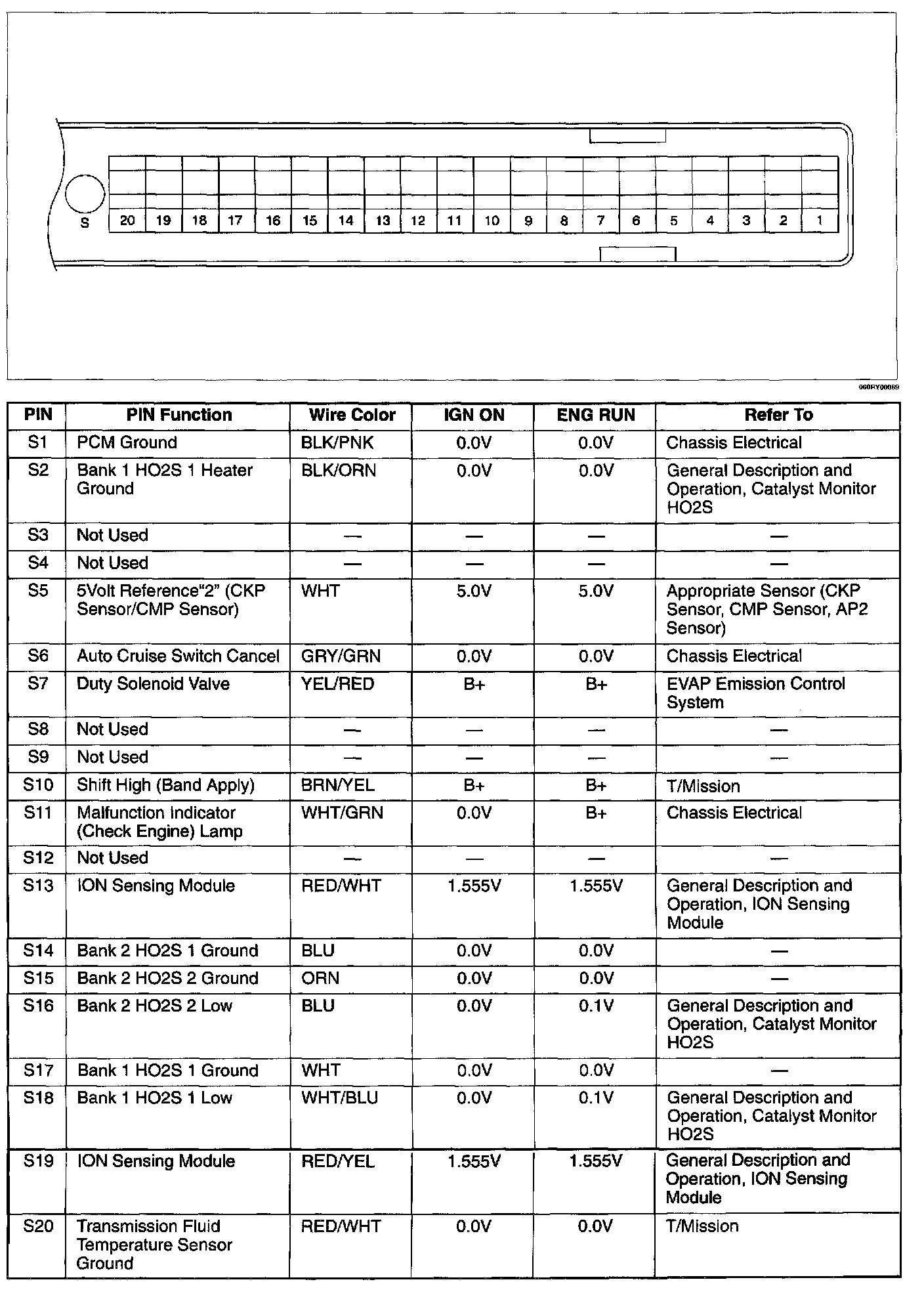 PCM Pinout Table, 80-Way Red Connector - Row "S1 - 20":