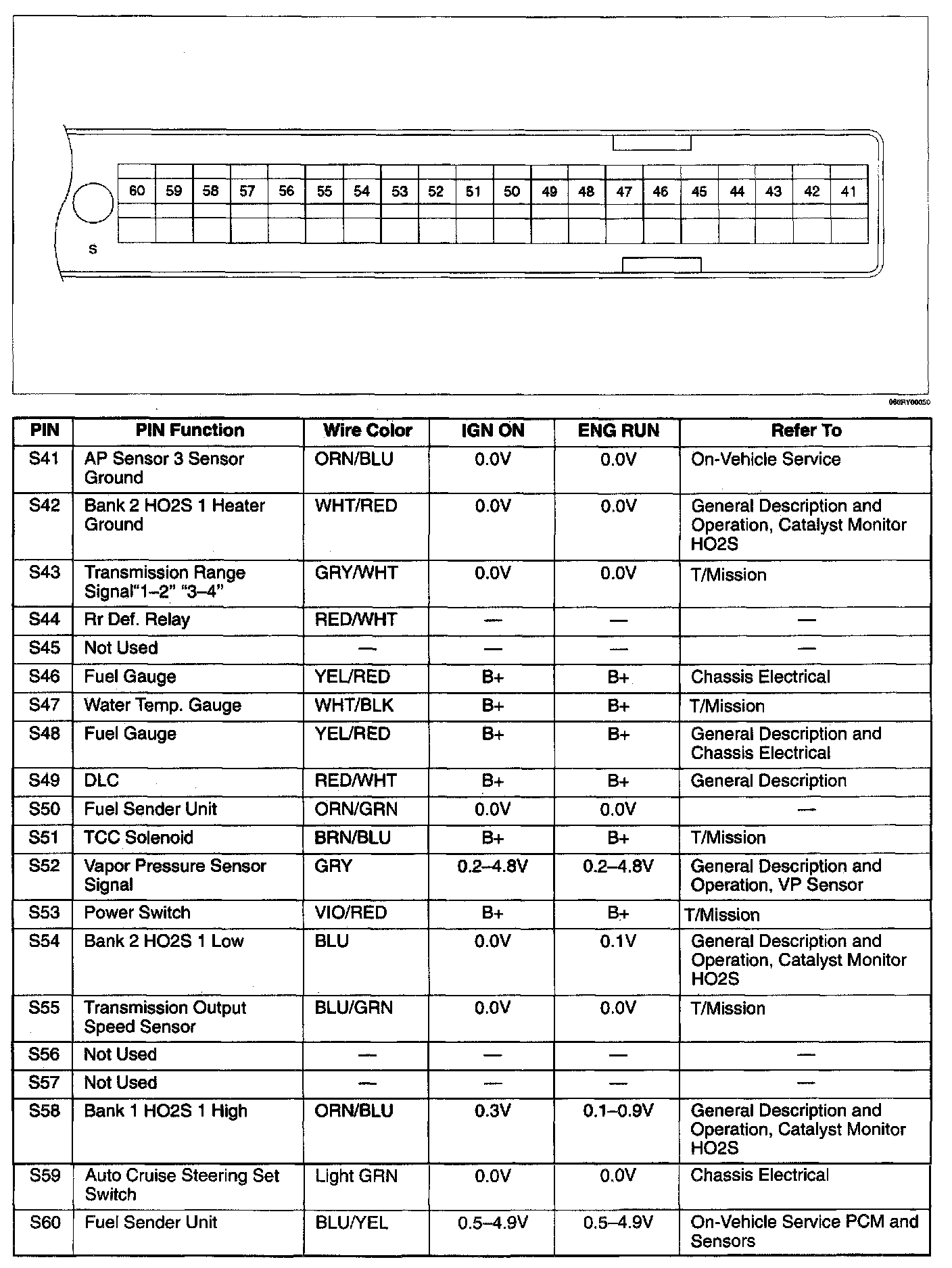 PCM Pinout Table, 80-Way Red Connector - Row "S41 - 58":