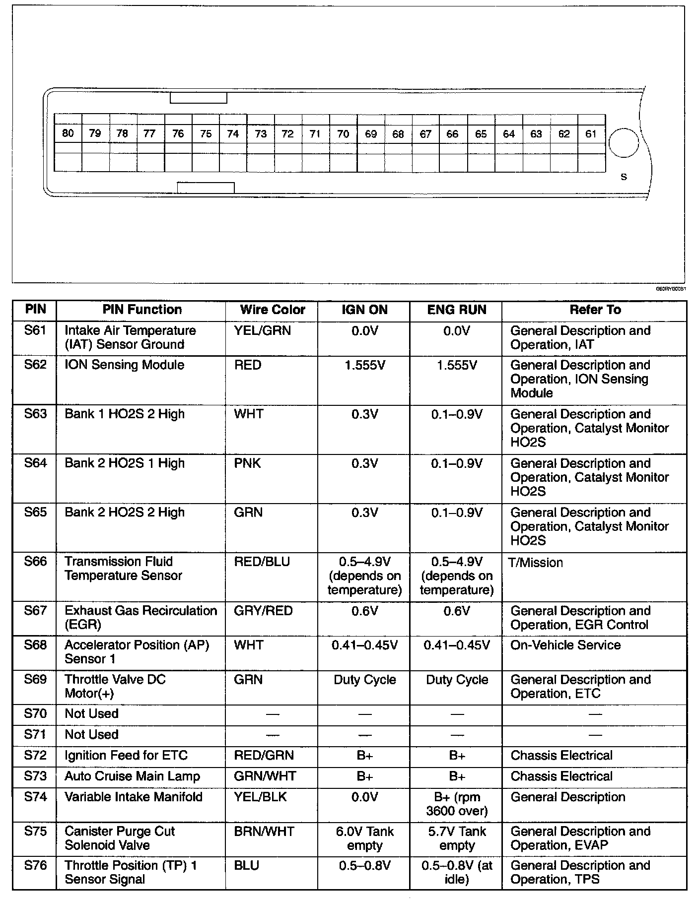 PCM Pinout Table, 80-Way Red Connector - Row "S61 - 76":