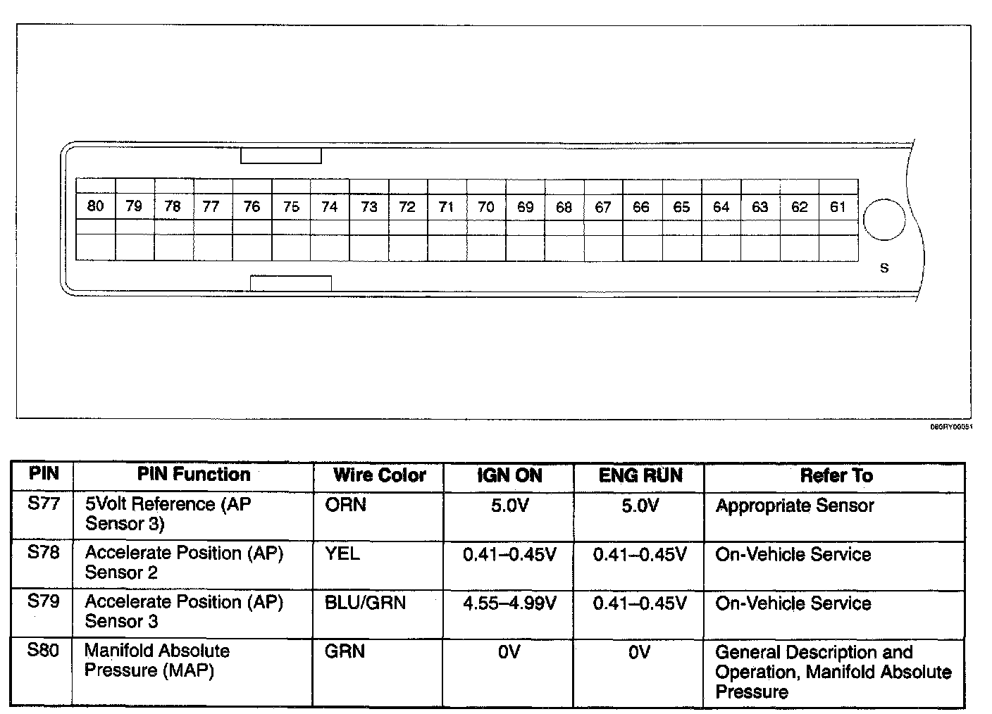 PCM Pinout Table, 80-Way Red Connector - Row "S77 - 80":