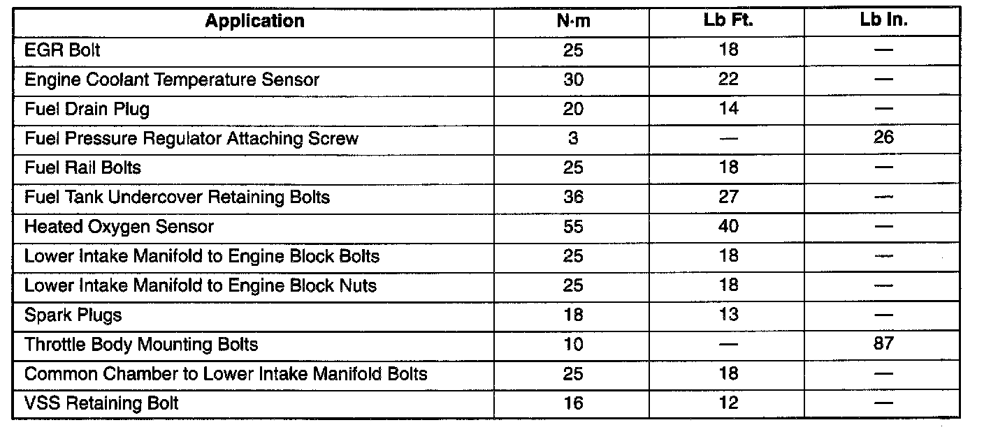 Tightening Specifications: