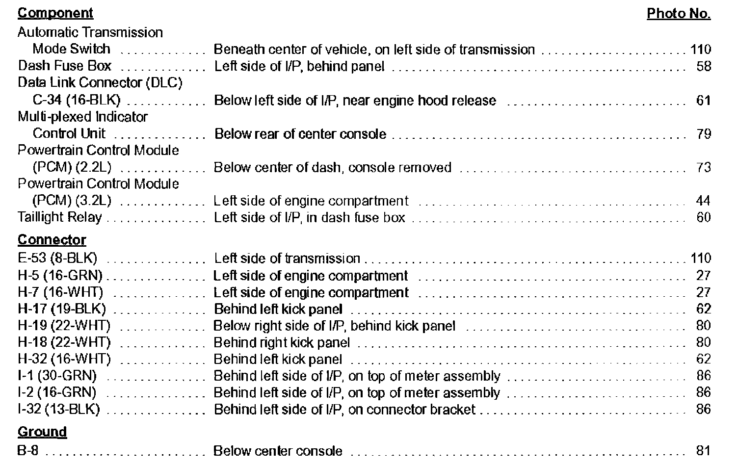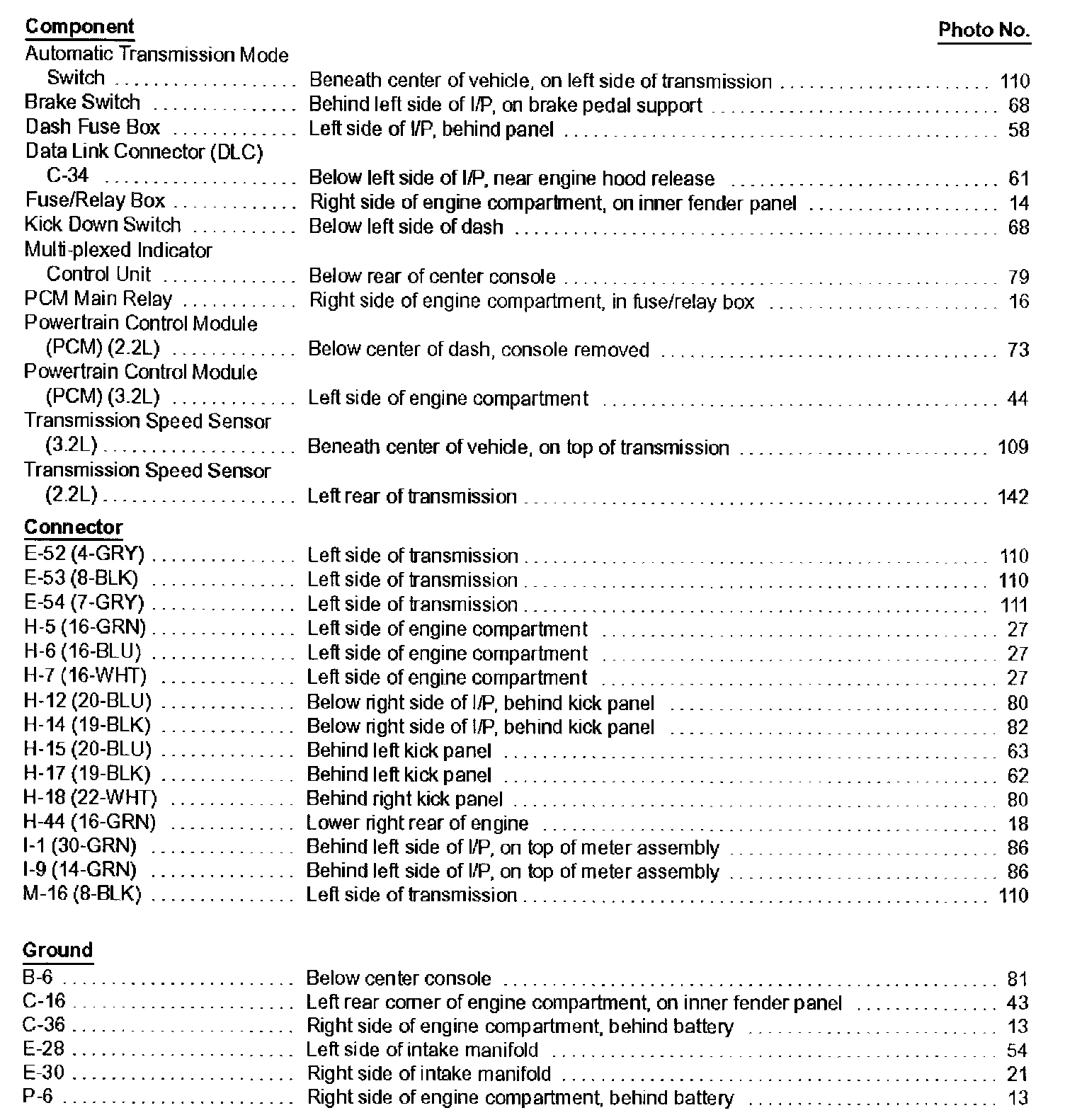 Component location Index photographs can be found at Diagnosis and Repair/Locations/Components.