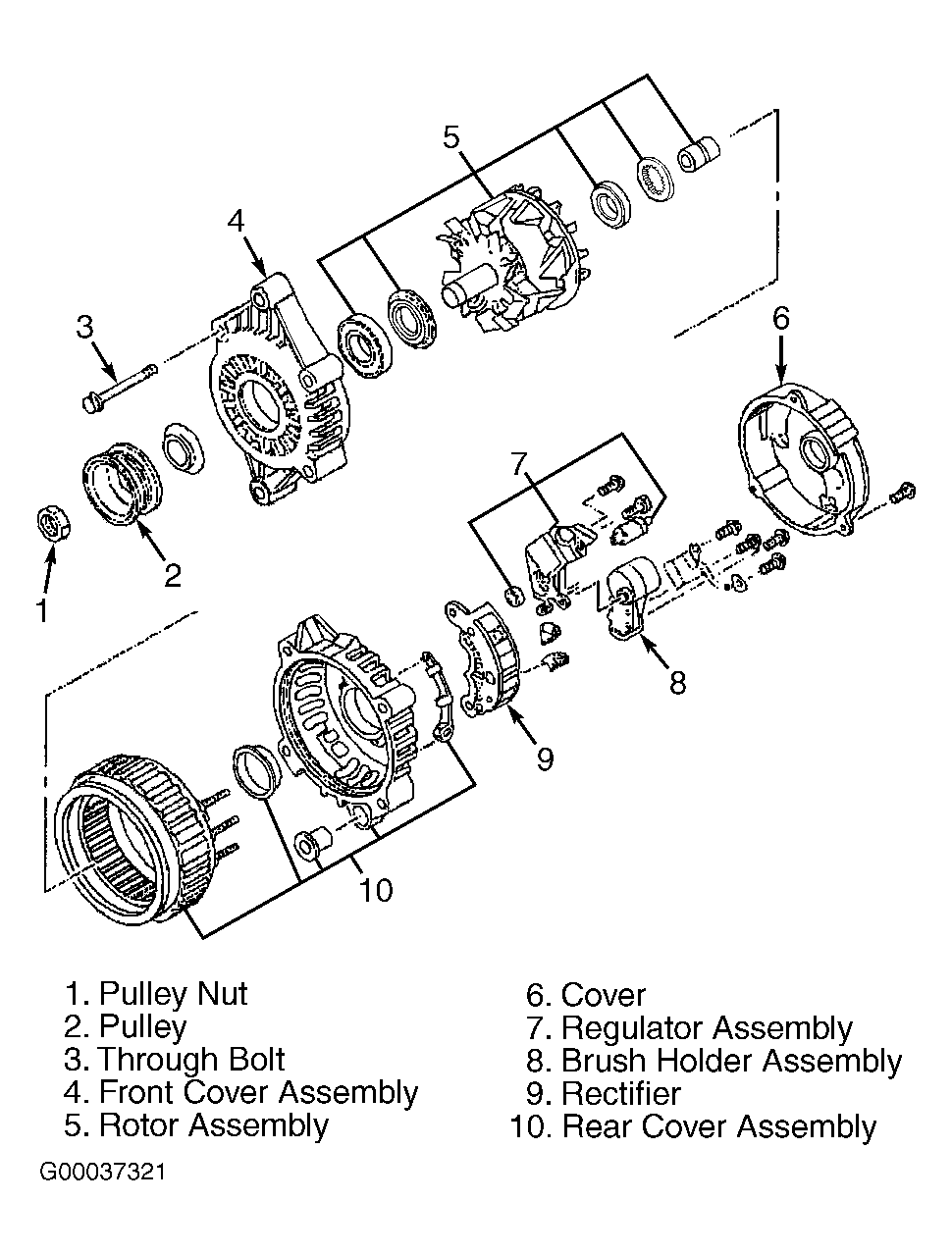 Fig 2: Exploded View Of Generator (Passport, Rodeo & Rodeo Sport 3.2L)