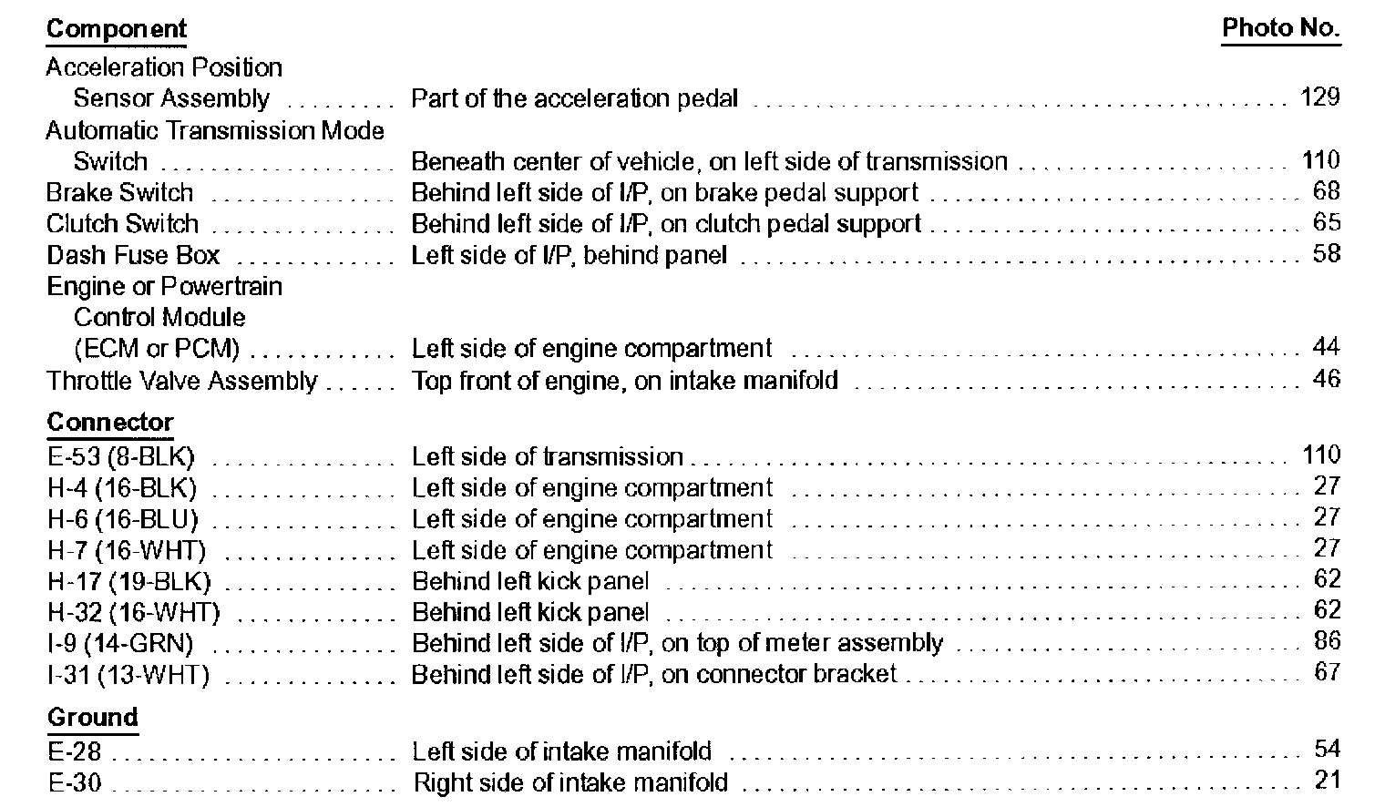 Component location Index photographs can be found at Diagnosis and Repair/Locations/Components.