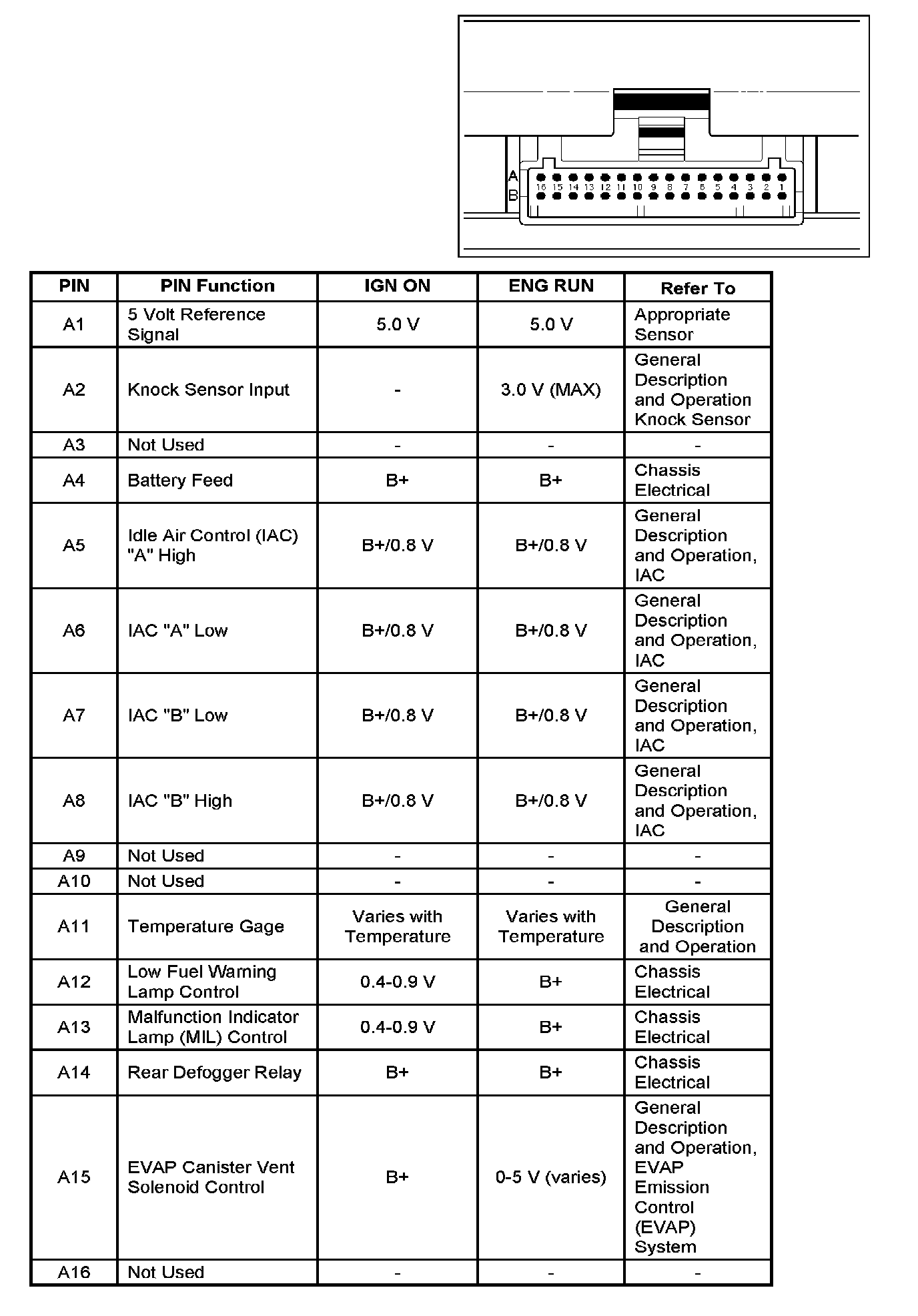 PCM Pinout Table, 32-Pin Red Connector - Row "A":