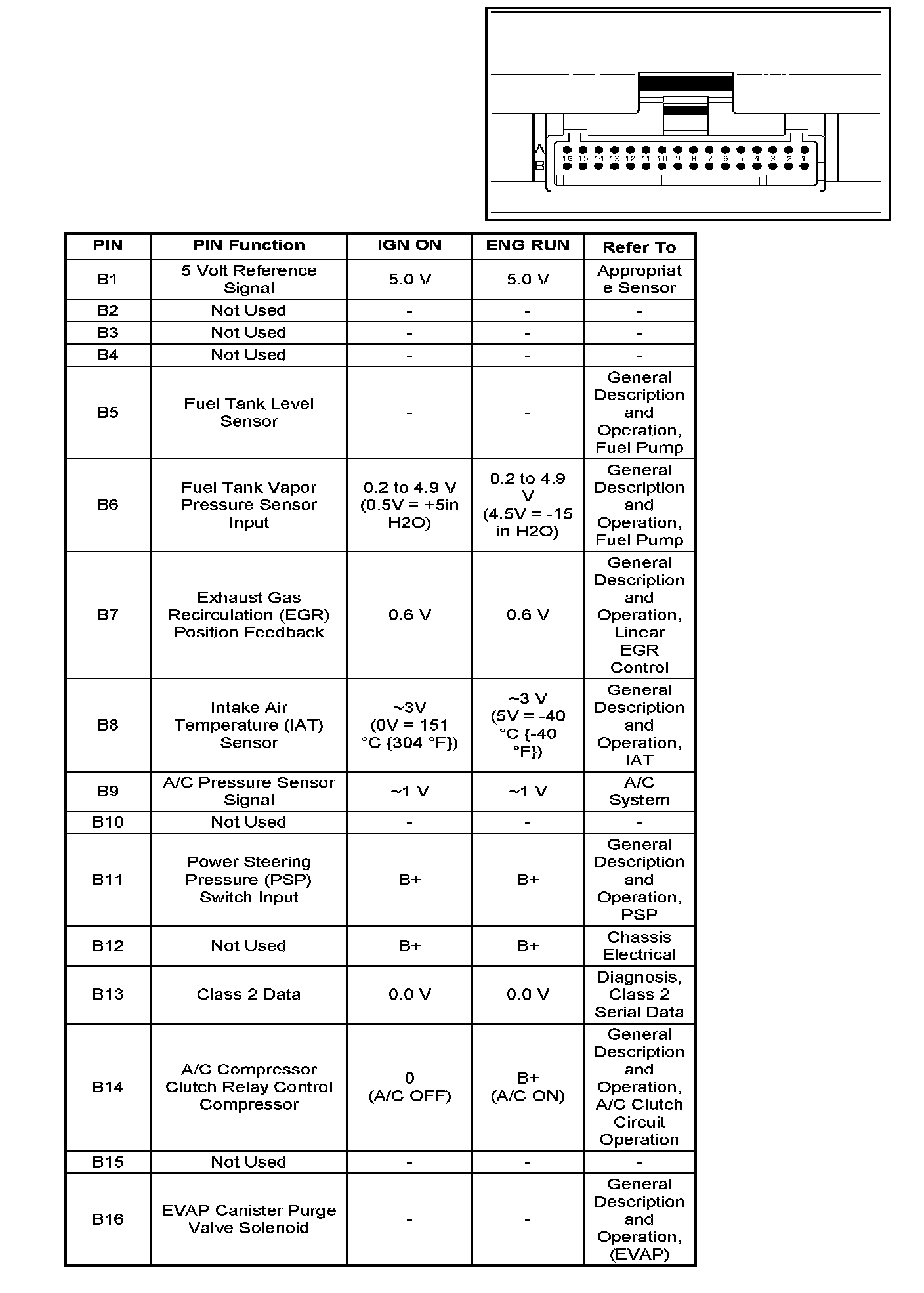 PCM Pinout Table, 32-Pin Red Connector - Row "B":