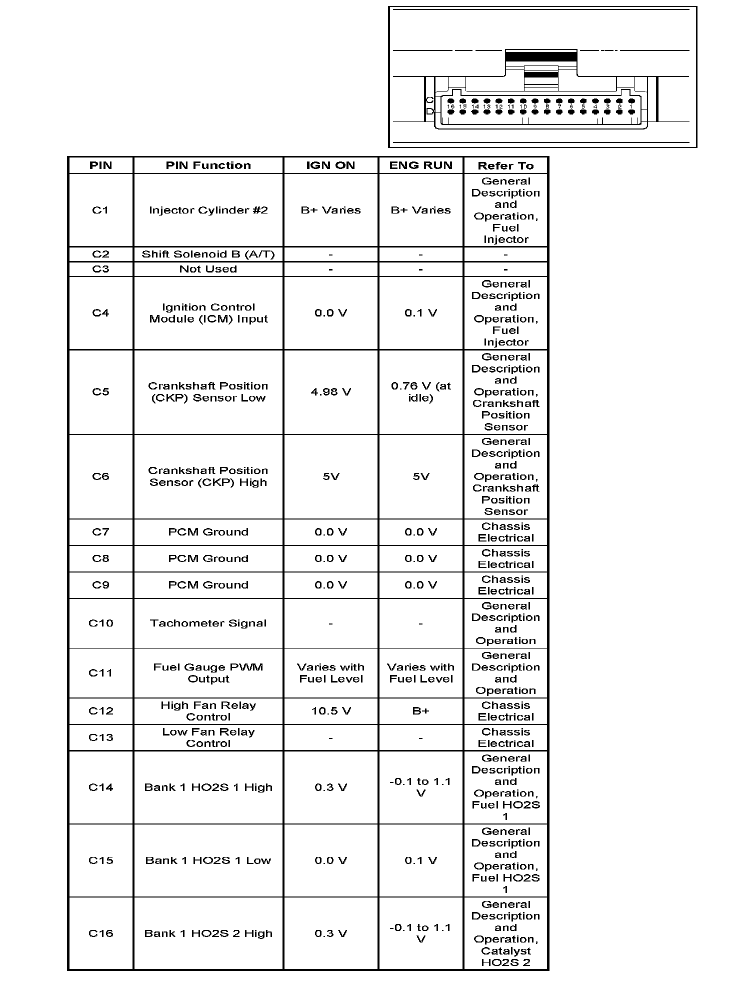 PCM Pinout Table, 32-Pin Red Connector - Row "C":