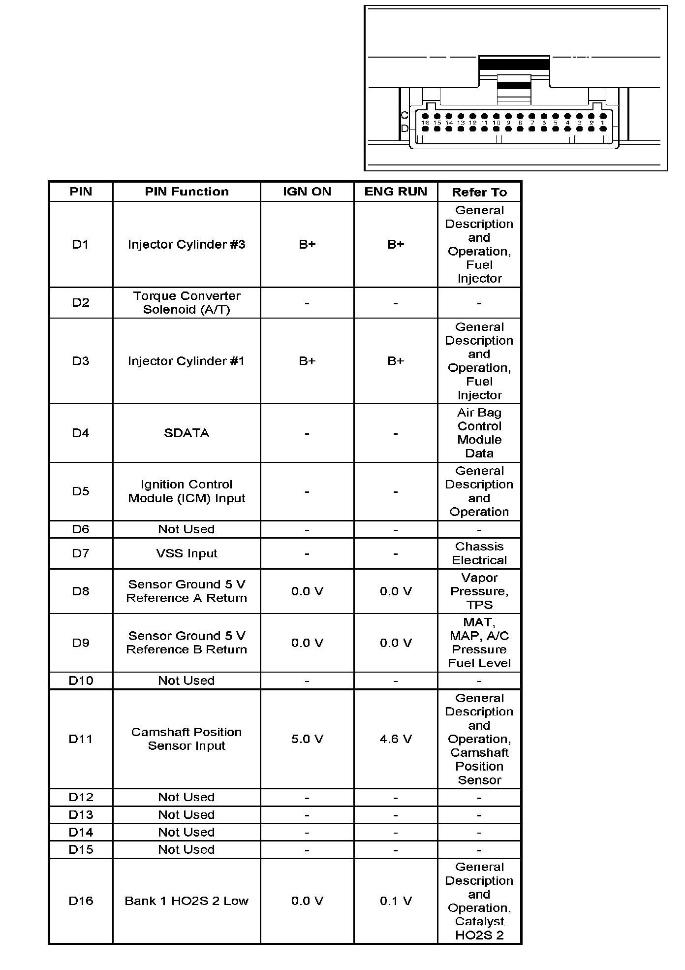PCM Pinout Table, 32-Pin Red Connector - Row "D":