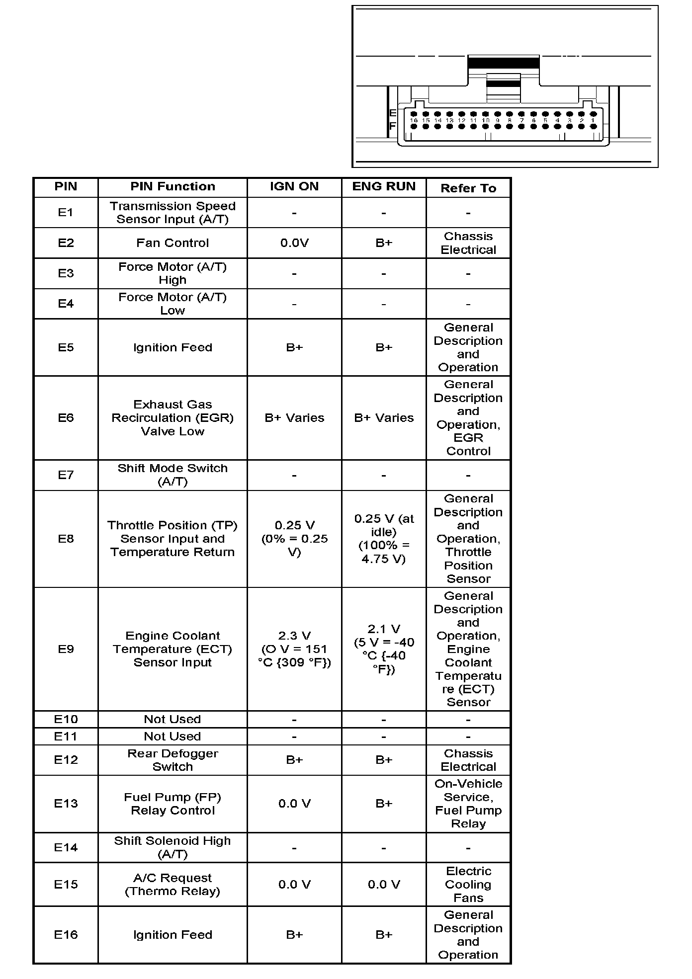 PCM Pinout Table, 32-Pin Red Connector - Row "E":