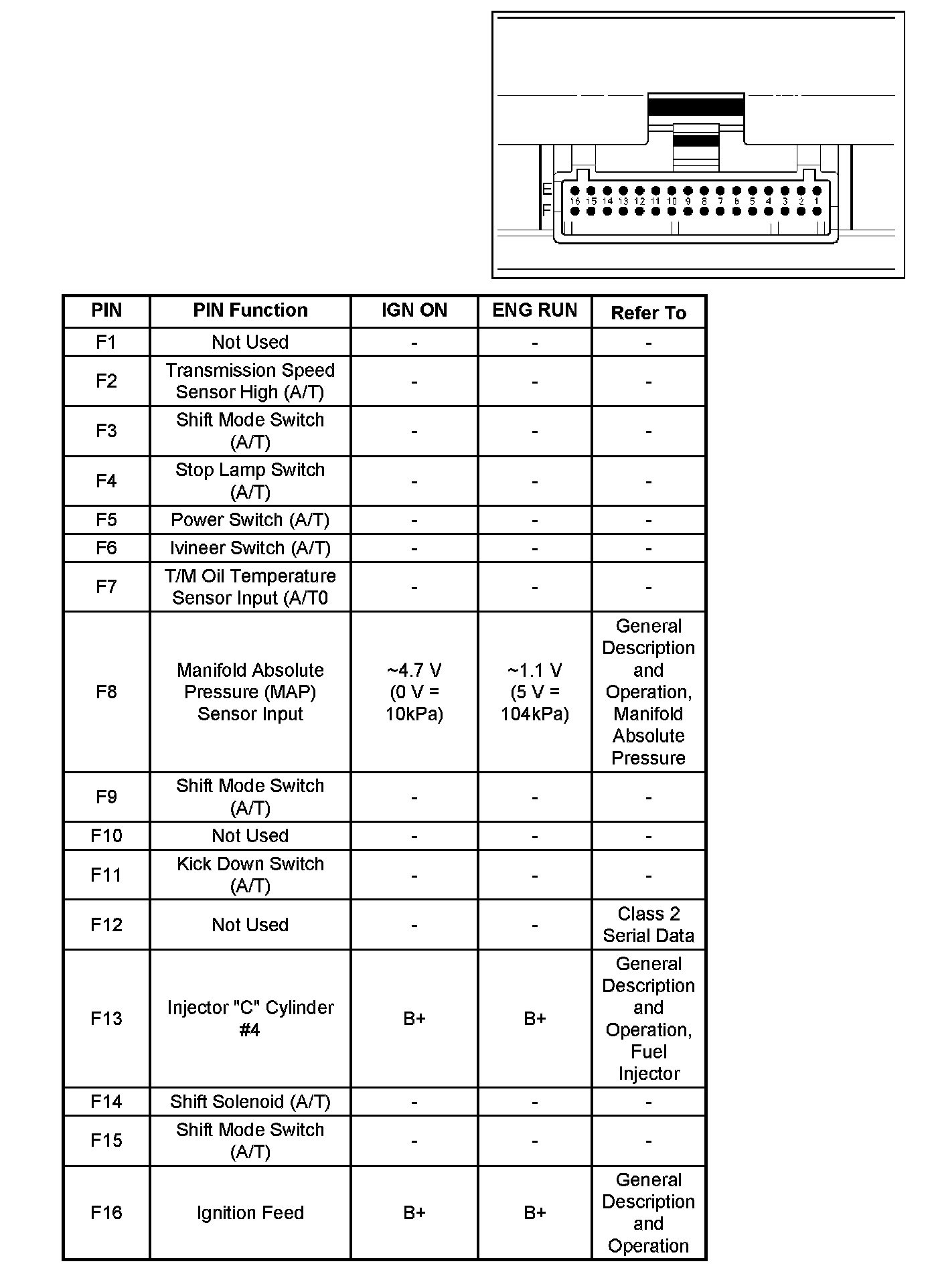 PCM Pinout Table, 32-Pin Red Connector - Row "F":