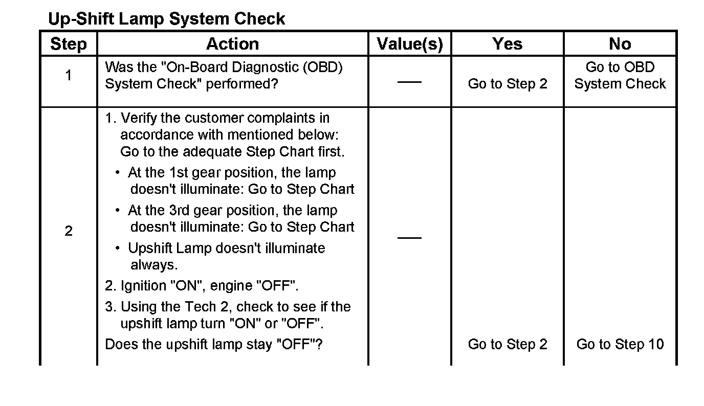 Upshift Lamp System Check (Manual Transmission Only)Upshift Lamp System Check (Manual Transmission Only):
