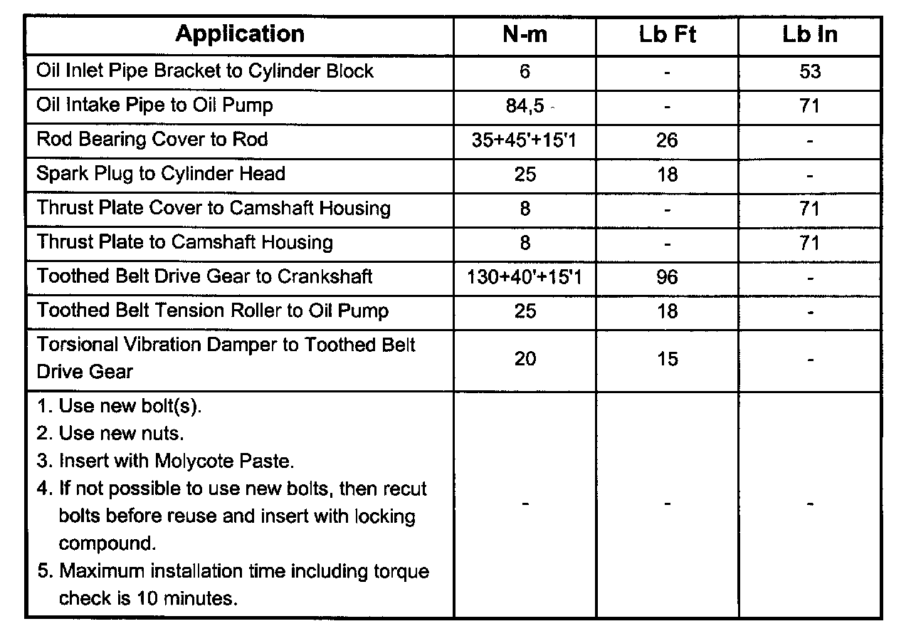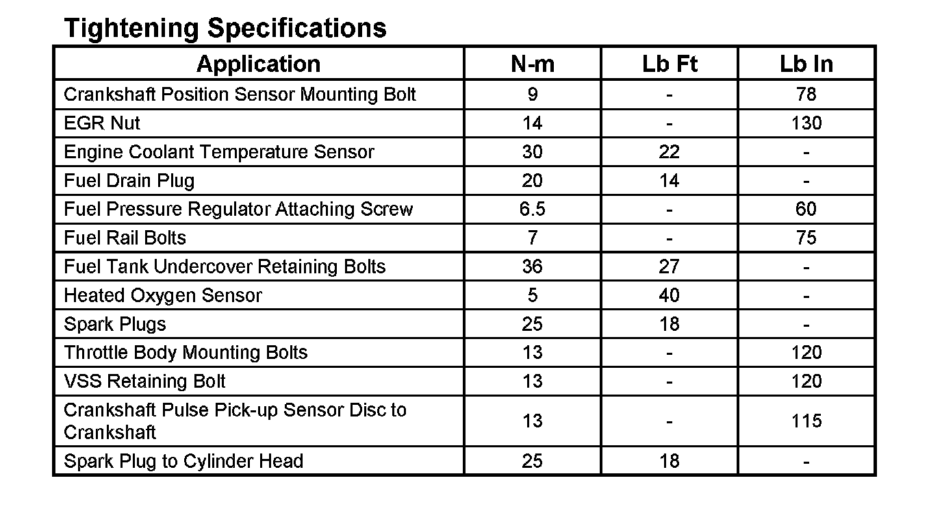 Tightening Specifications: