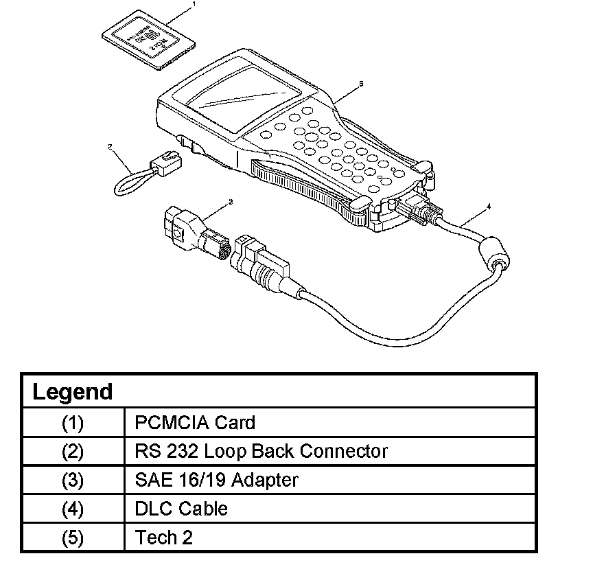 1. The Isuzu 2001 System PCMCIA card (1) inserts into the Tech 2 (5).