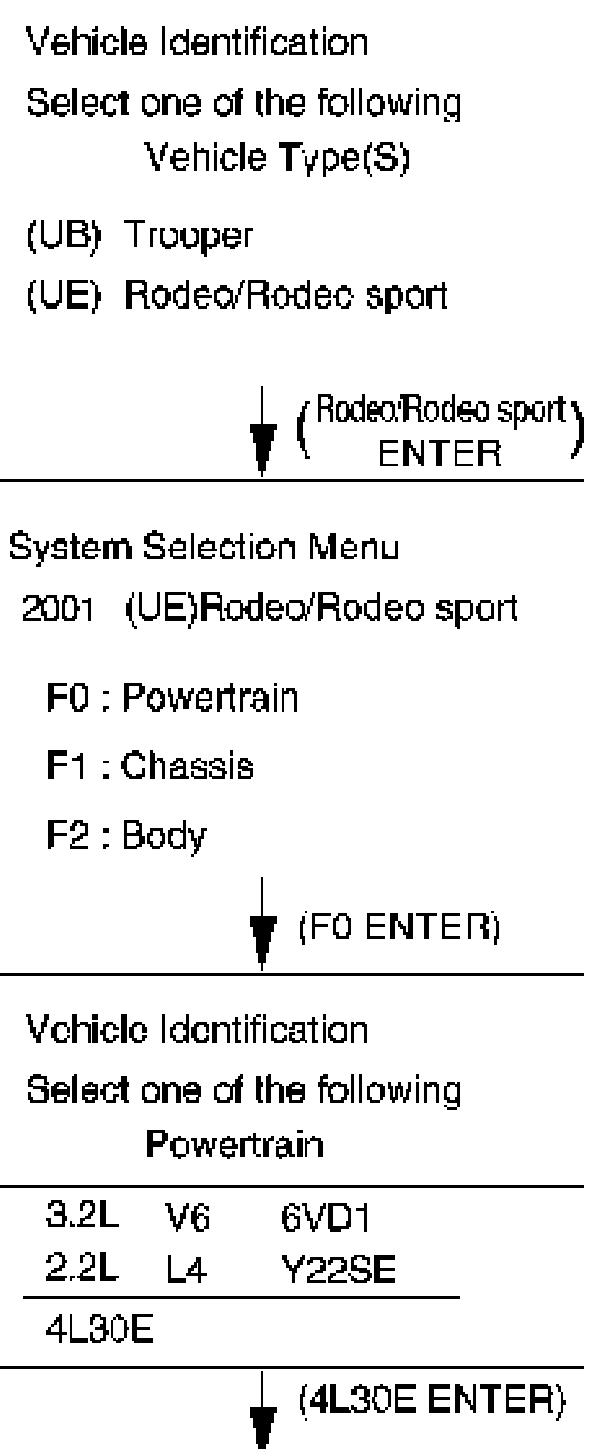 8. The power up screen is displayed when you power up the tester with the Isuzu systems PCMCIA card. Follow the operating procedure below.