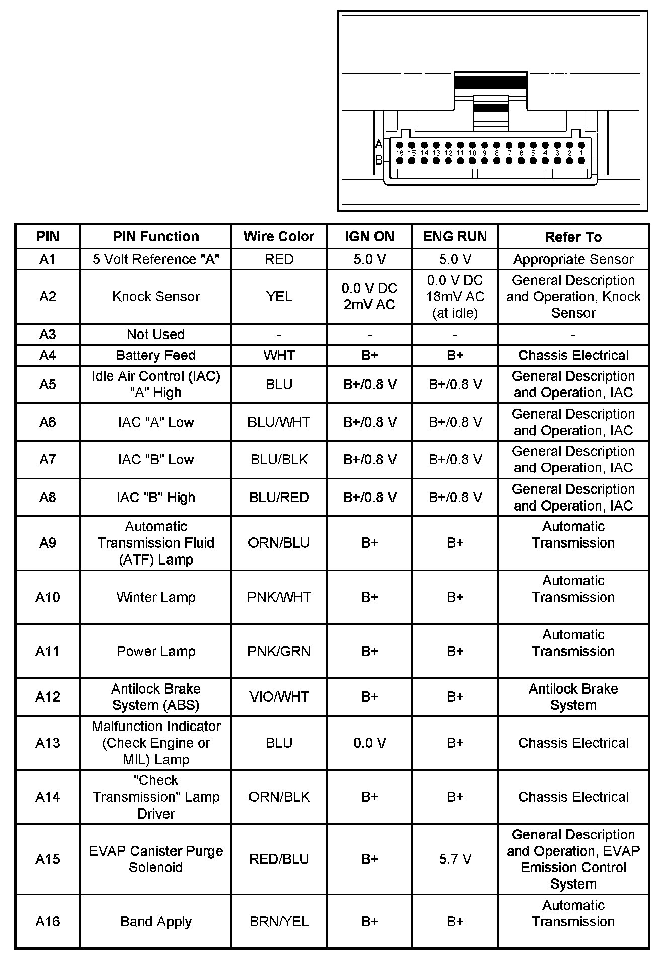 PCM Pinout Table, 32-Way Red Connector - Row "A":