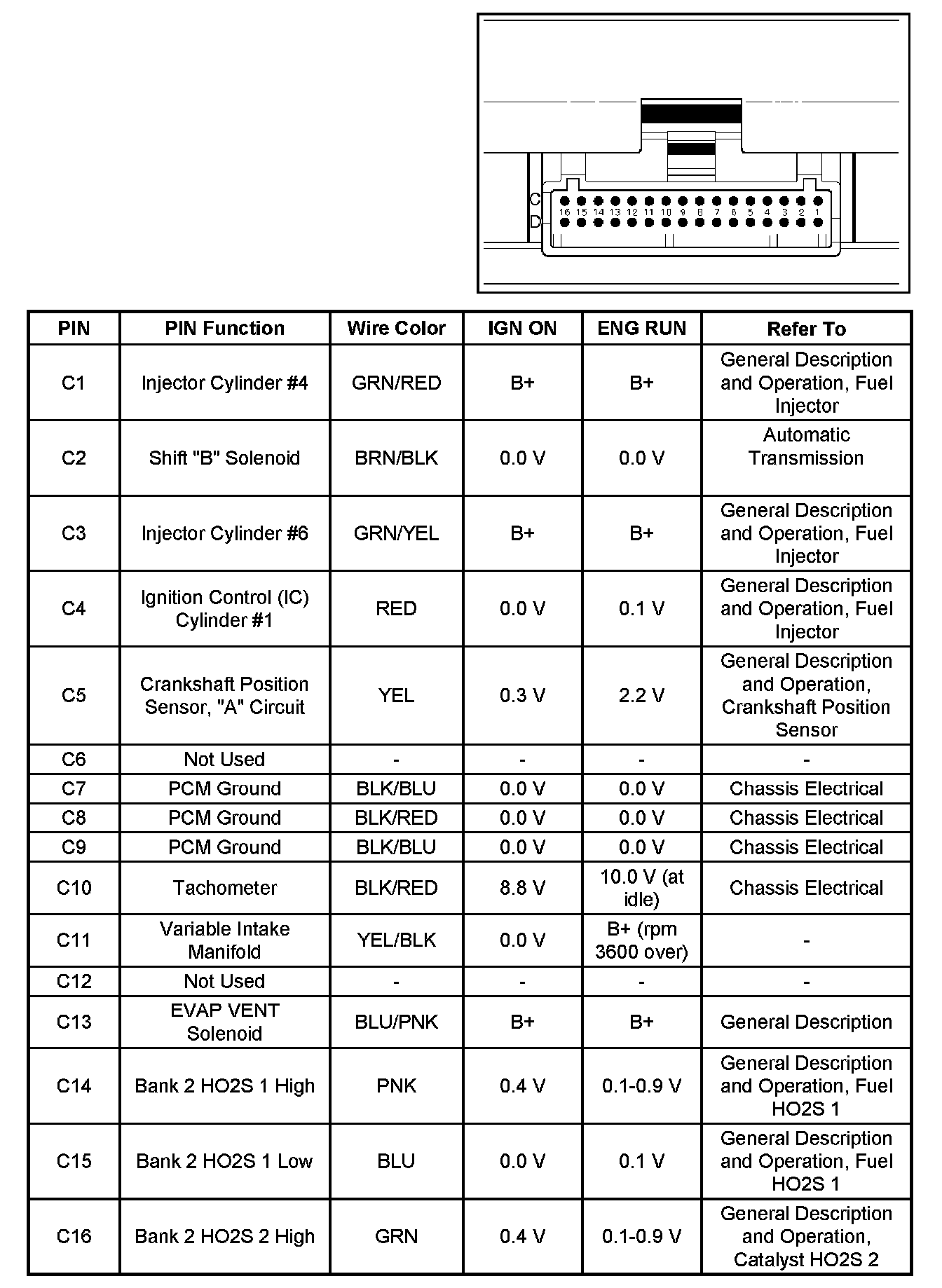 PCM Pinout Table, 32-Way Red Connector - Row "C":