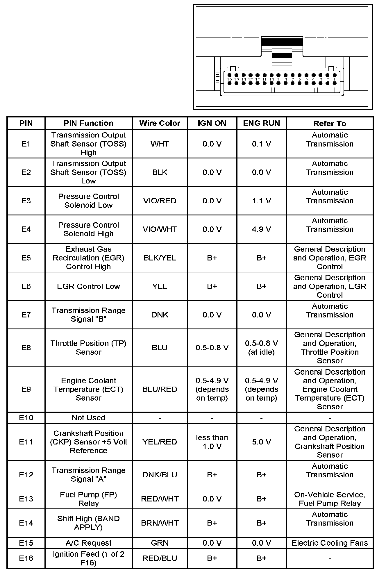 PCM Pinout Table, 32-Way Red Connector - Row "E":