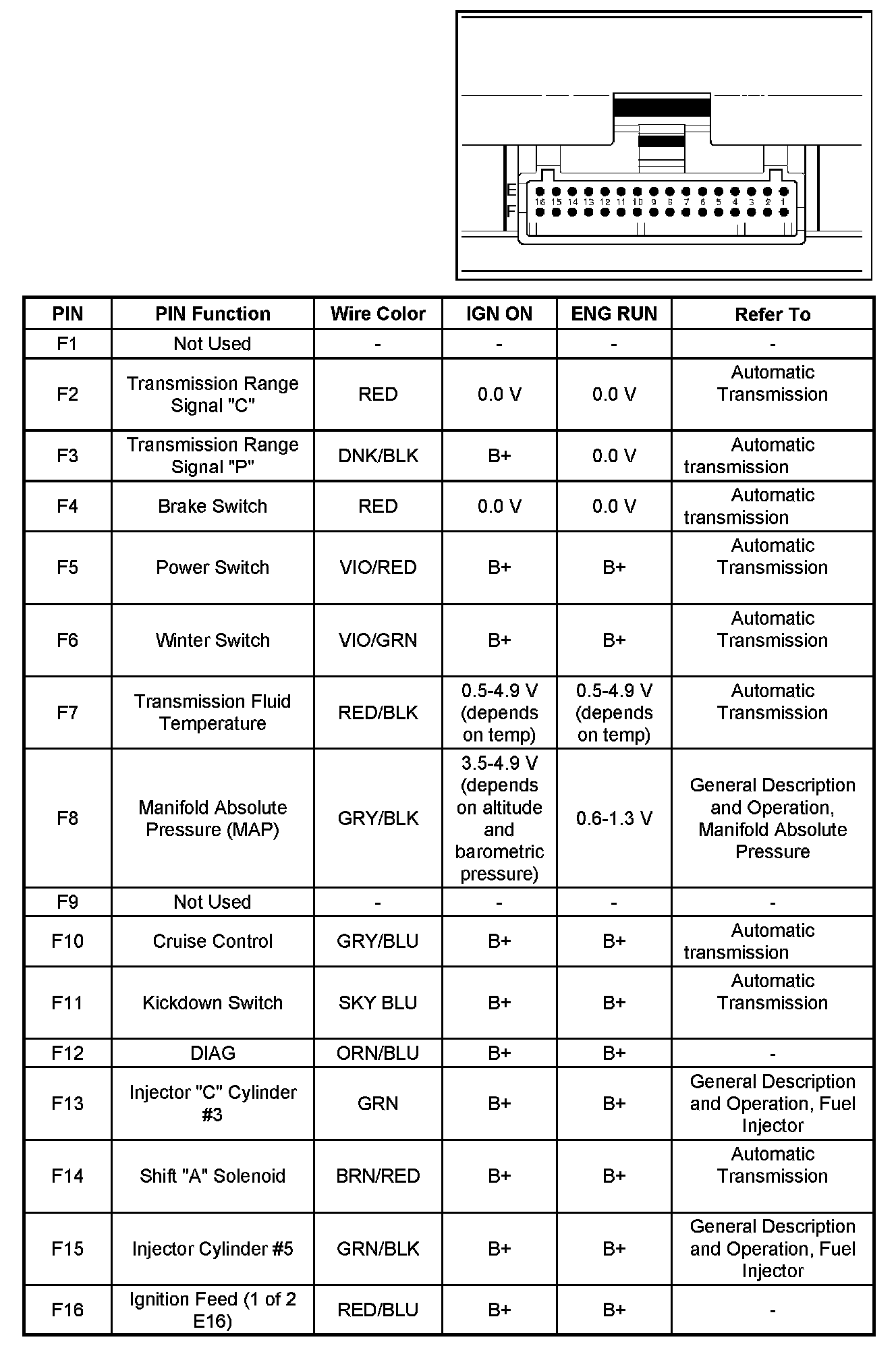 PCM Pinout Table, 32-Way Red Connector - Row "F":