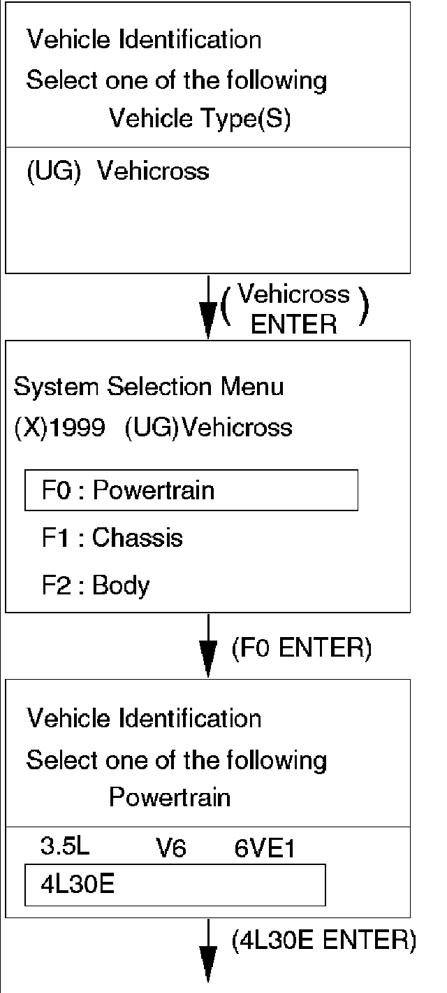 Once the test vehicle has been identified an "Application (Powertrain) Menu" screen appears. Please select the appropriate application.