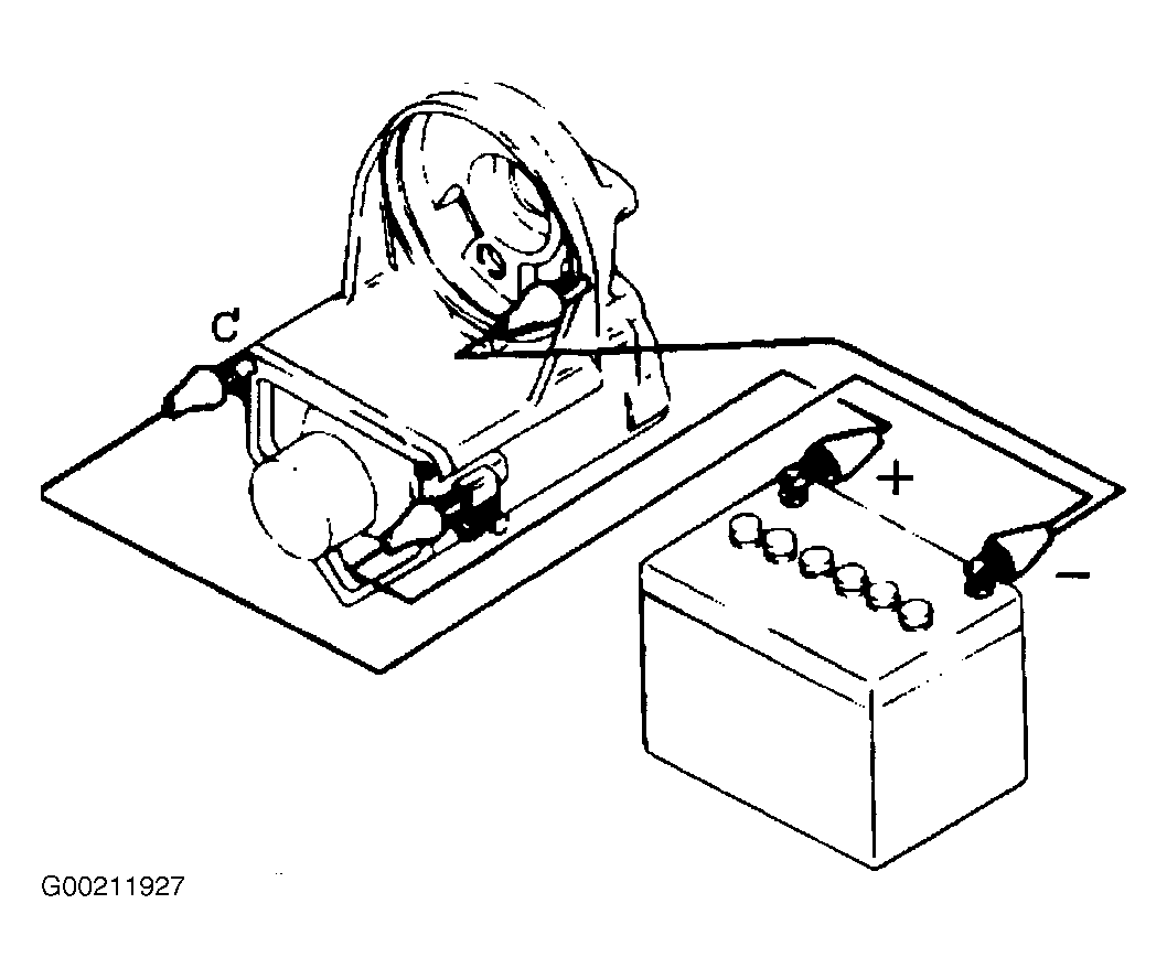 Verify that the pinion pulls out when the battery (+) pole is connected to terminal 50.