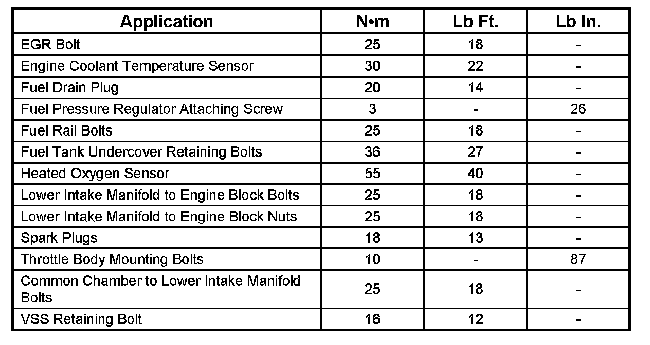 Torque Specifications:
