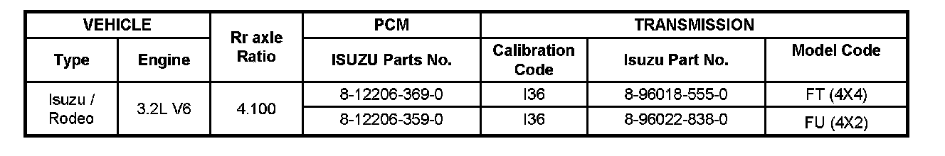 Home >> Isuzu >> 2002 >> Rodeo LS 4WD V6-3.2L >> Repair and Diagnosis >> Powertrain Management >> Transmission Control Systems >> Application and ID